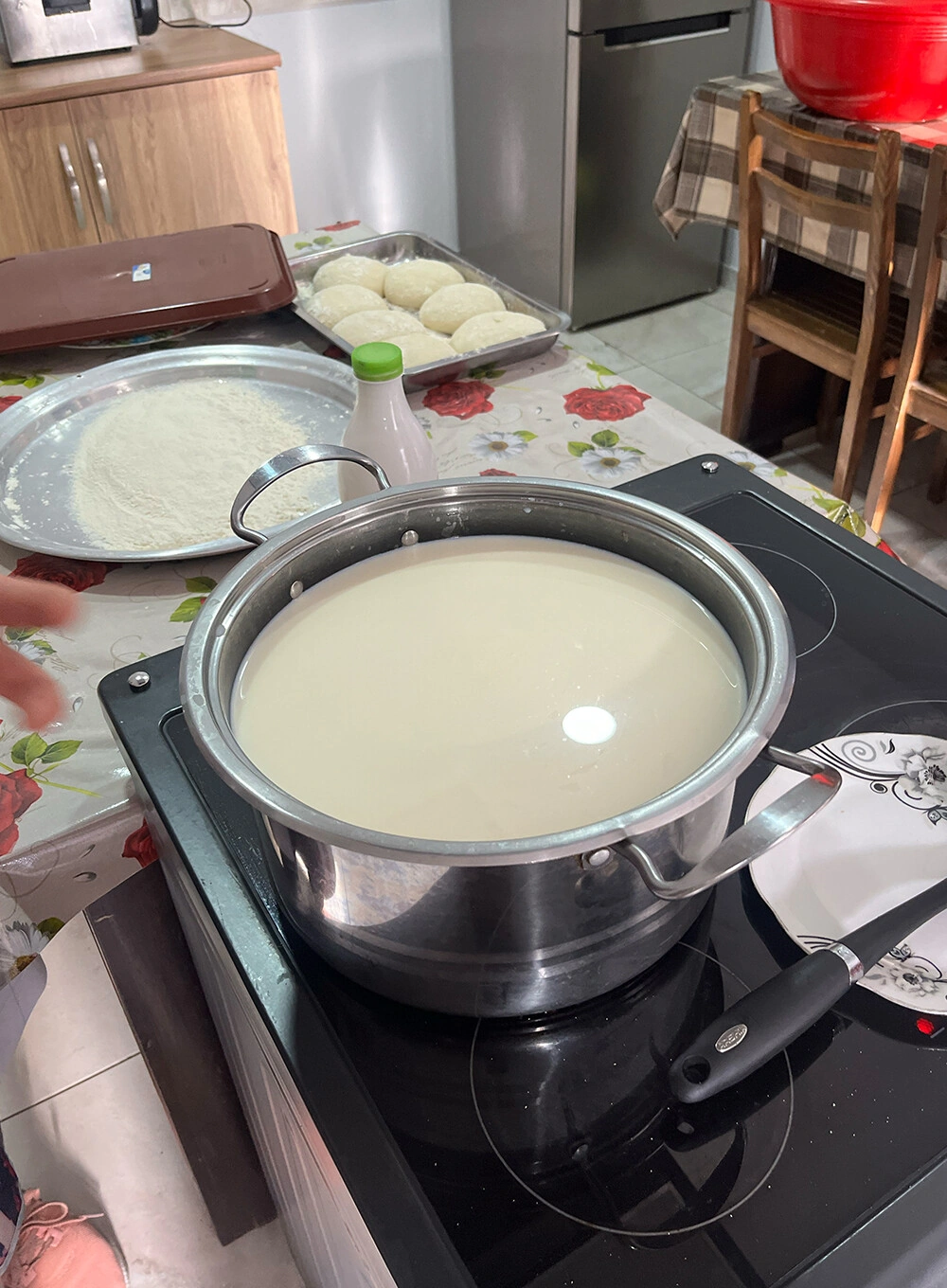 - молоко 3,5–4% — от одного литра до трёх-четырёх (тут зависит от объёма продукта, который вы хотите получить);