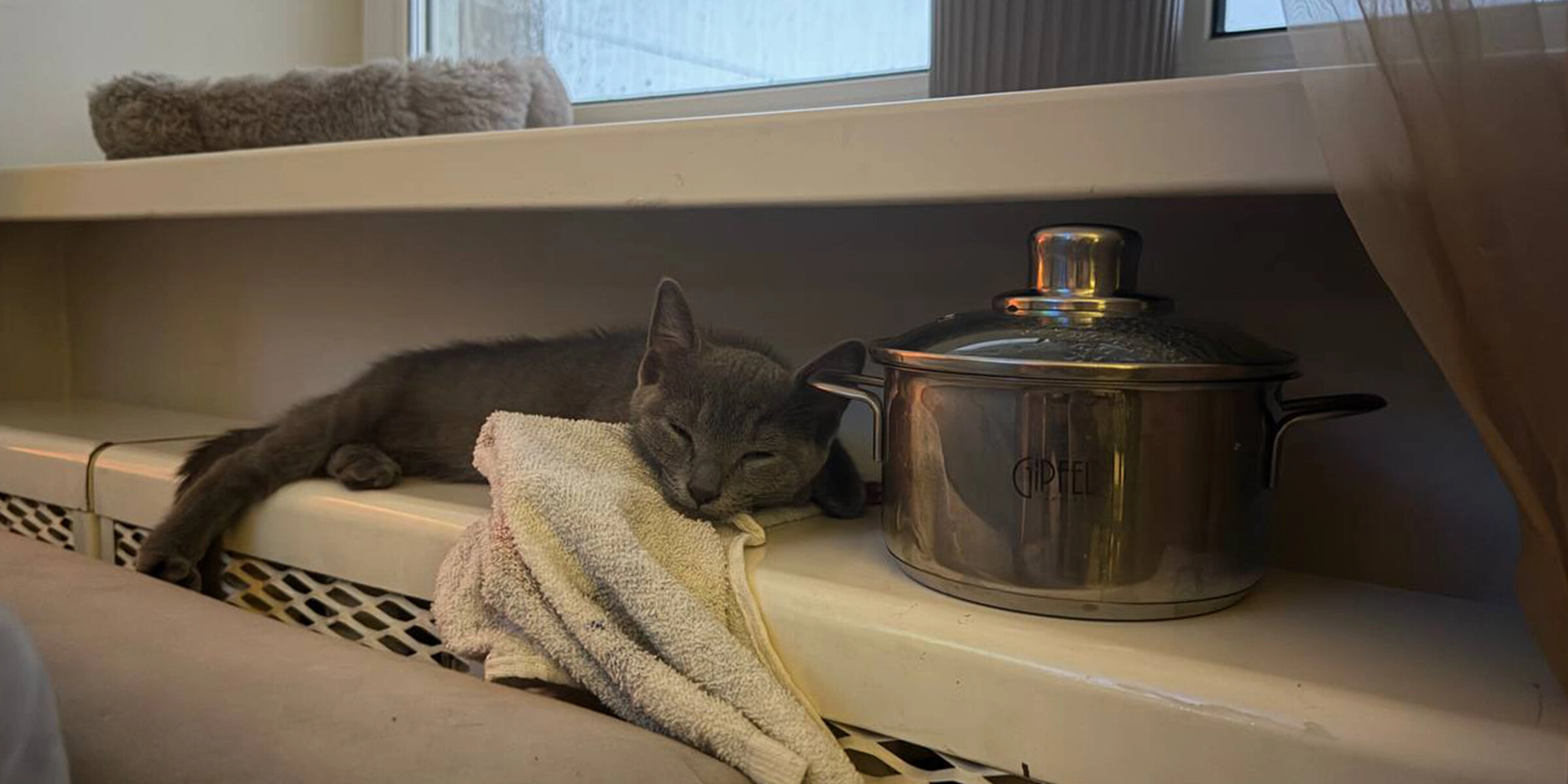 После этого кастрюлю нужно убрать с огня, накрыть и держать в тёплом месте. Я даже дополнительно укутала её и поставила поближе к батарее, чтобы молоко спокойно схватилось.