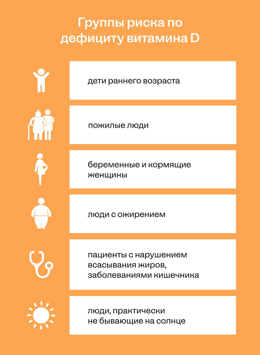 Согласно клиническим рекомендациям РАЭ, группы риска по дефициту витамина D: