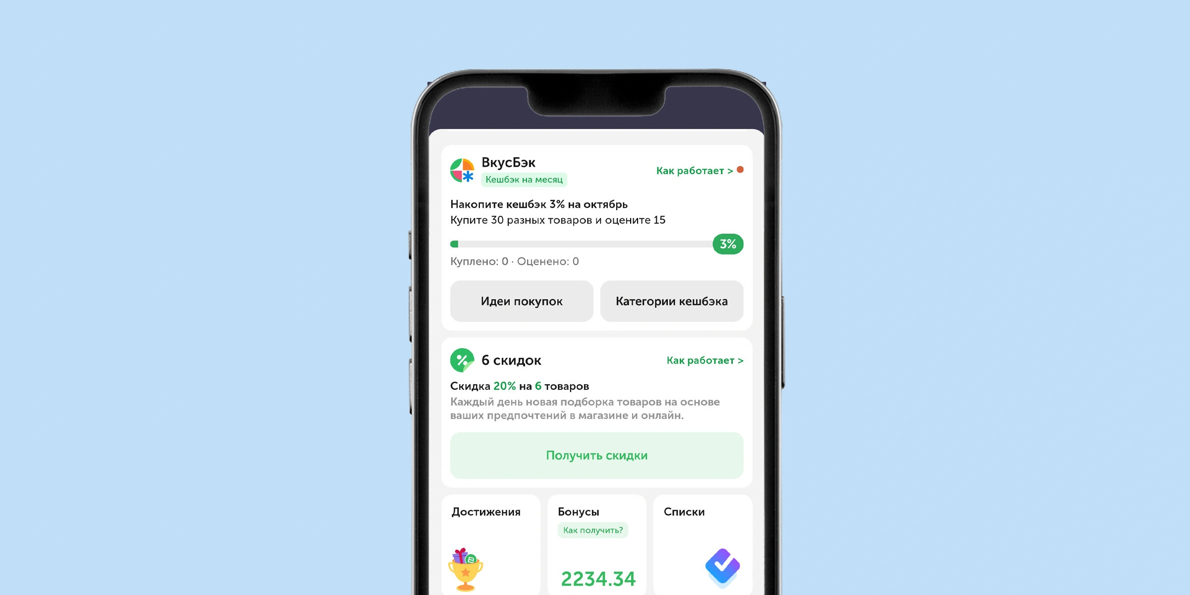 В первый месяц вы покупаете разные товары и ставите им оценки. Во втором — получаете кешбэк на выбранные категории и одновременно накапливаете выгоду на следующий месяц.