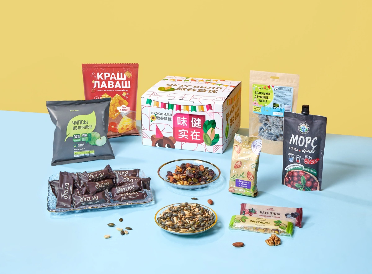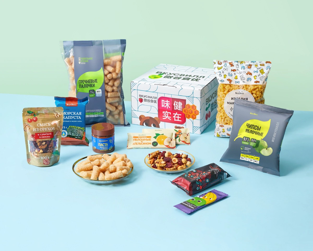 Для китайских покупателей мы собрали 4 дегустационных сета из 35 товаров с учётом разных возрастов и вкусов, специфики питания. В наборы вошли хлебцы, ореховые смеси, напитки, фруктовые и овощные чипсы, консервация, отруби, полезные сладости. В разработке сетов приняла участие нутрициолог ВкусВилла, член ассоциации диетологов Канады Наталья Нефёдова: она выбрала продукты, исходя из их пищевой ценности, с акцентом на пользу для каждой группы покупателей.