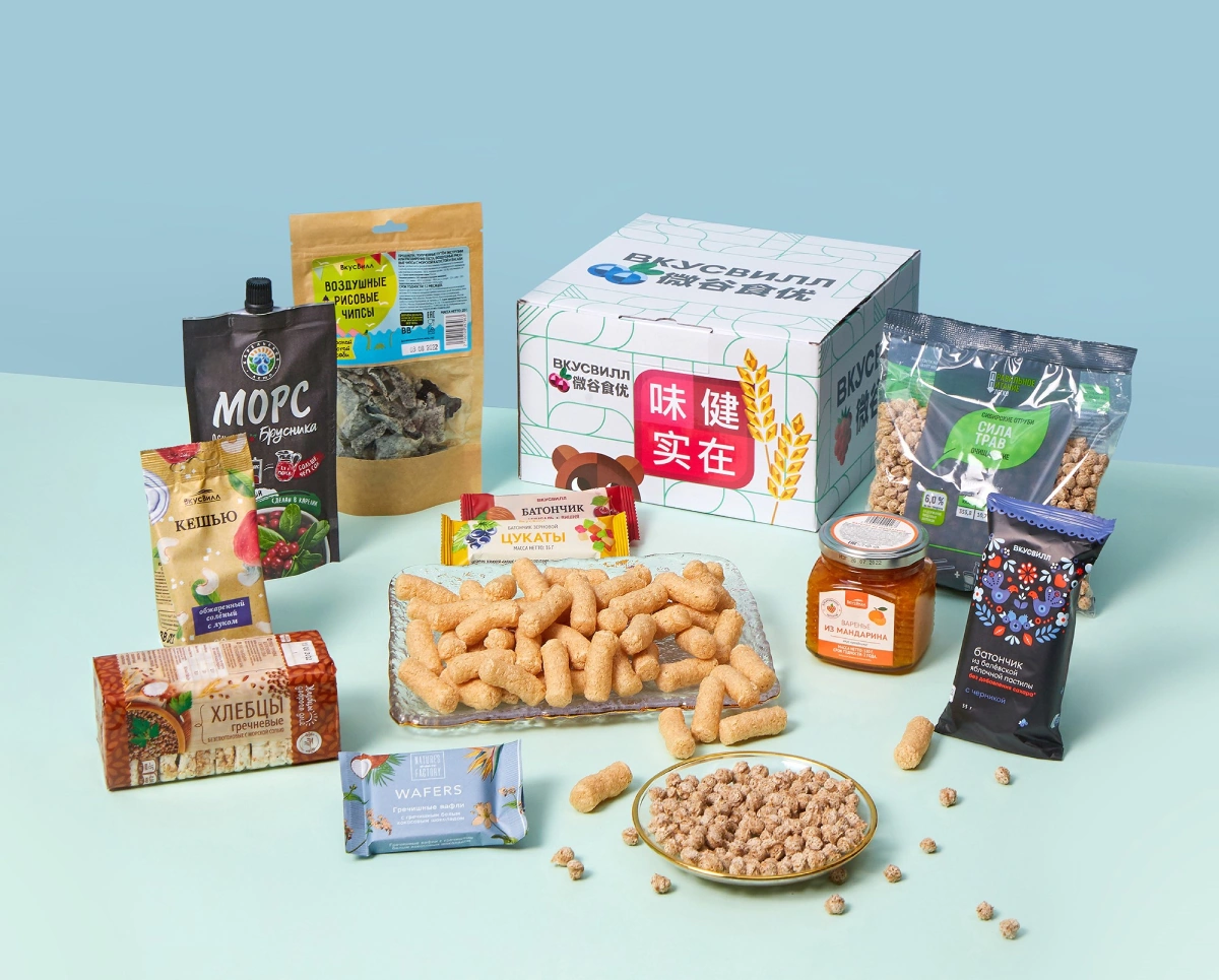 Как вы знаете, мнение покупателей и обратная связь от них — основные драйверы новых проектов и решений во ВкусВилле. Команда экспорта провела несколько этапов дегустаций — как среди китайцев, проживающих в Москве и ставших постоянными покупателями ВкусВилла, так и среди жителей Шанхая. Дегустаторы определили продукты-фавориты, которые первыми среди прочих вошли в пробные сеты. Выше всего оценили чипсы из морской капусты с васаби, чипсы из лаваша, гречишные палочки, бананово-ягодный, злаковый и детский батончики.