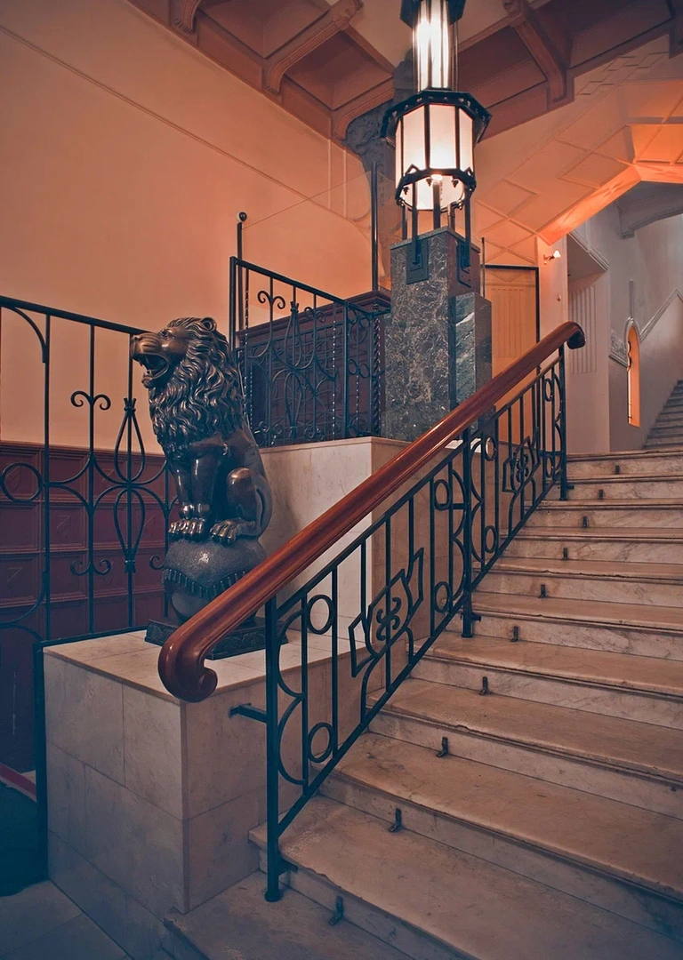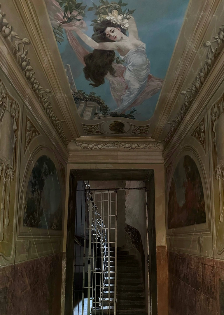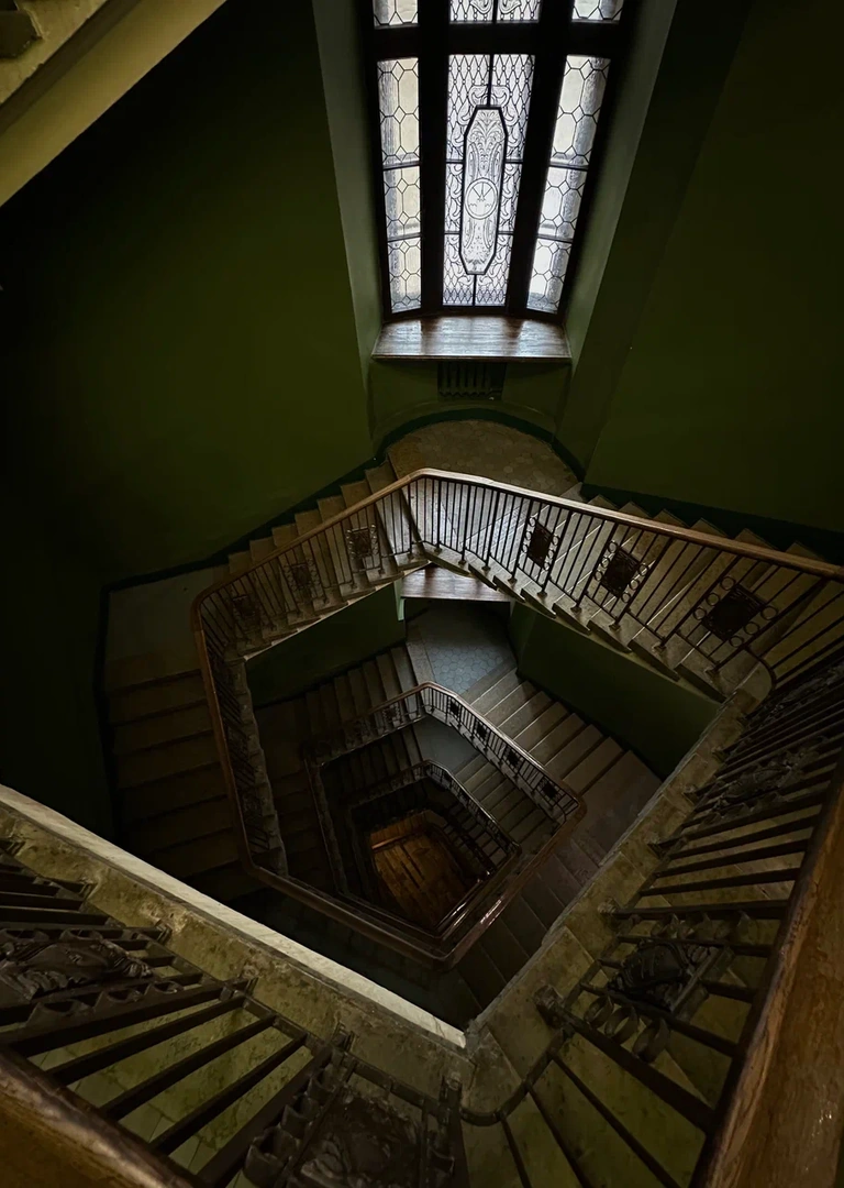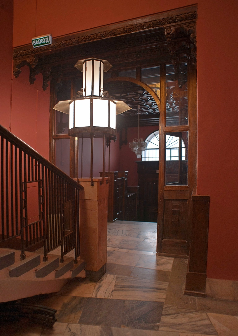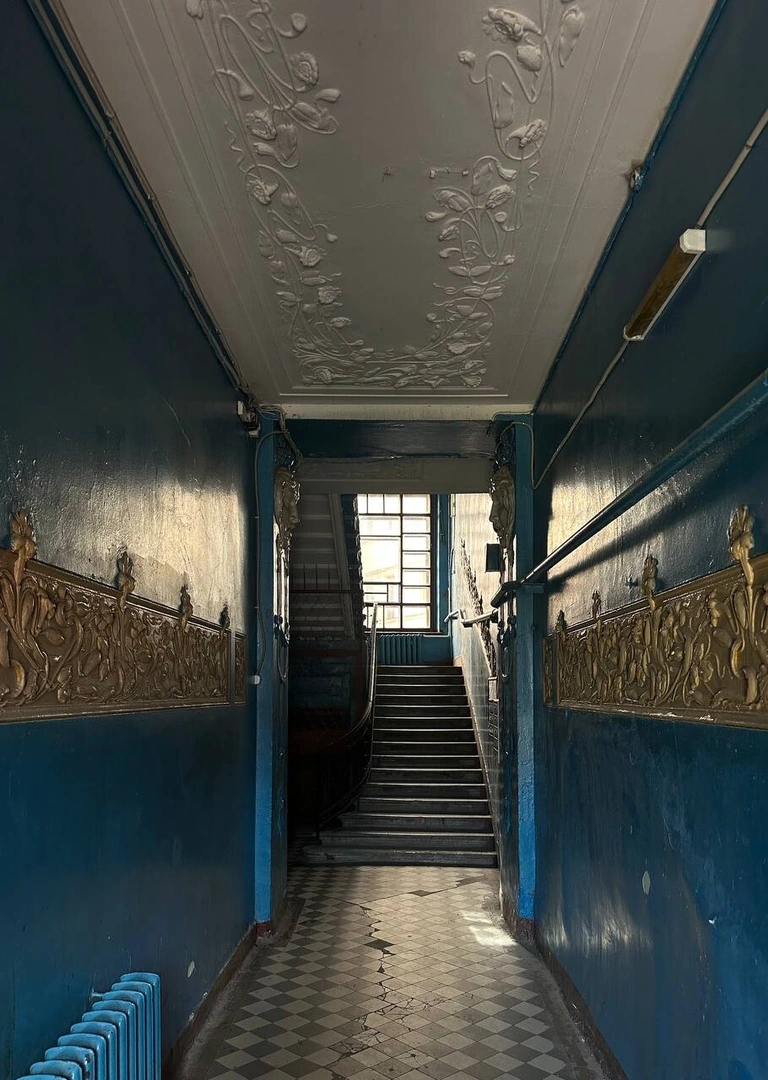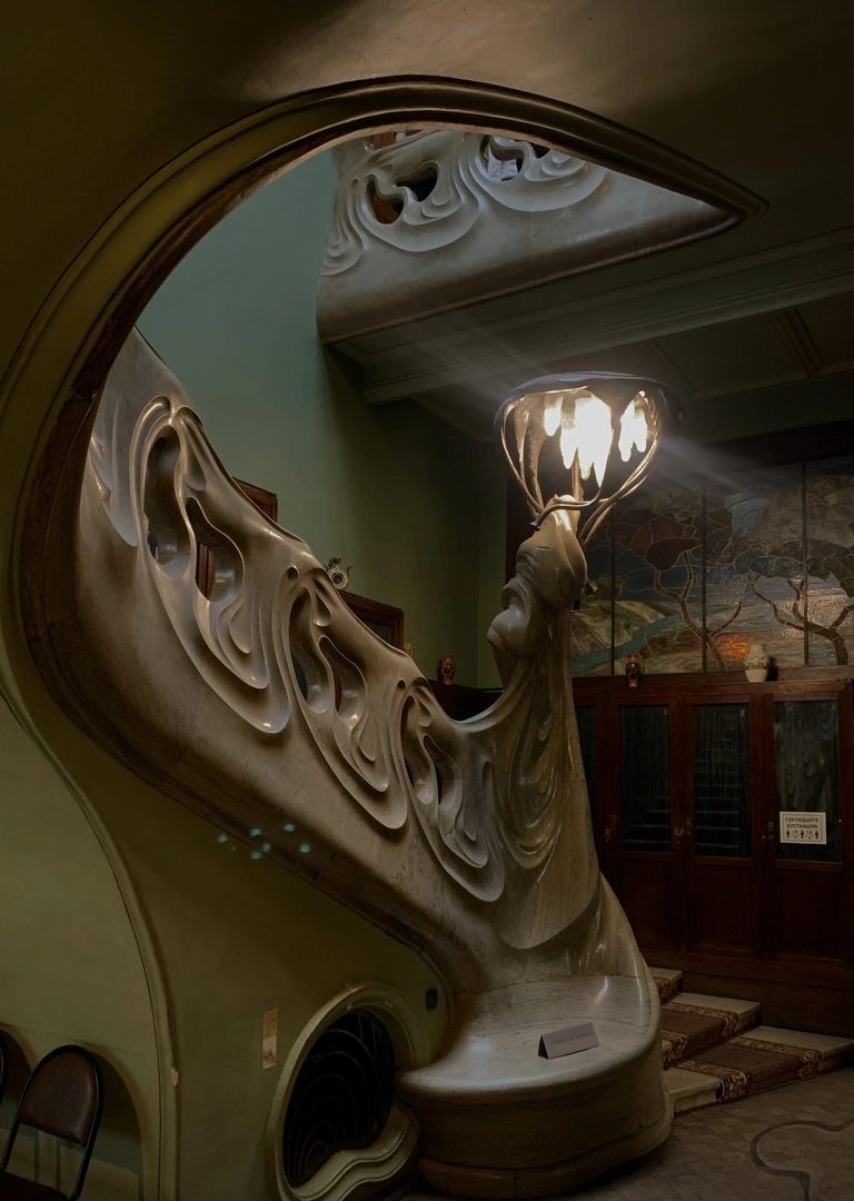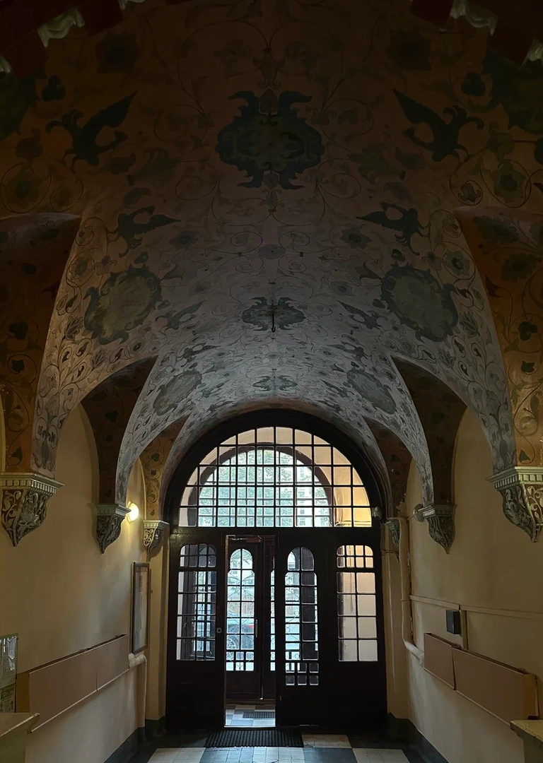 Шикарной лепнины, как в парадных Петербурга и Москвы, тут почти нет. Зато есть потрясающей красоты росписи и конфигурации лестниц (например, горячо любимые мной винтовые), ведь главный вход — это не только дверь, но и множество элементов: