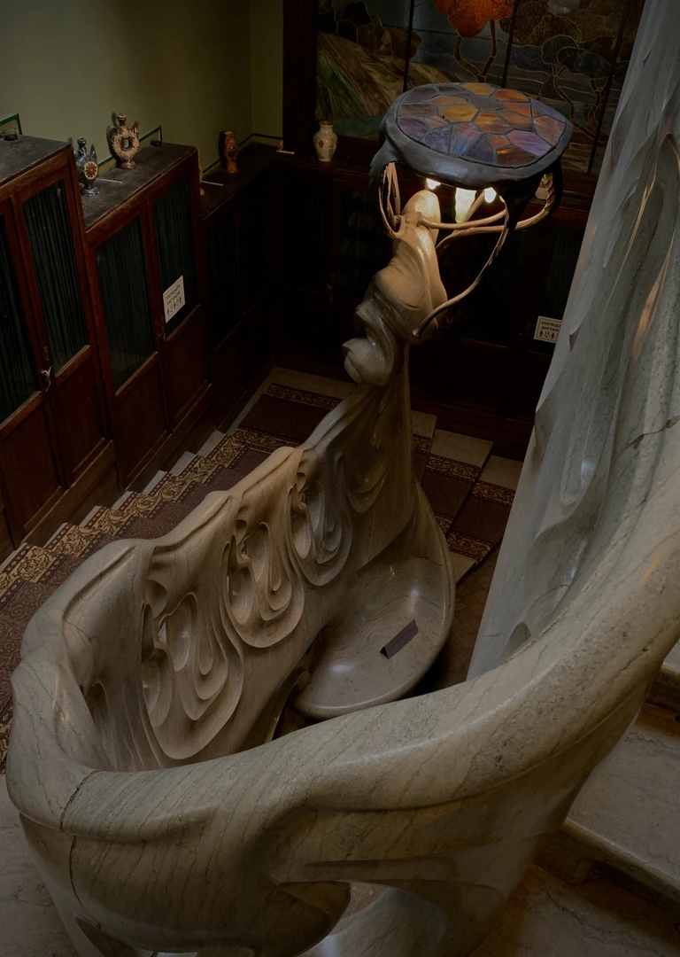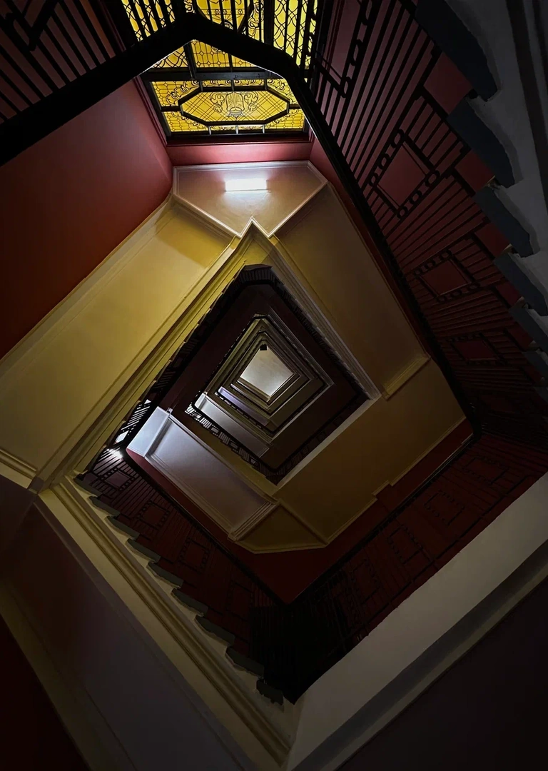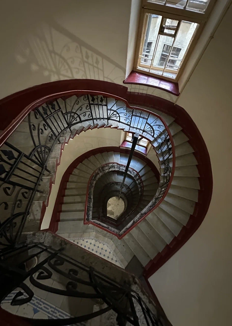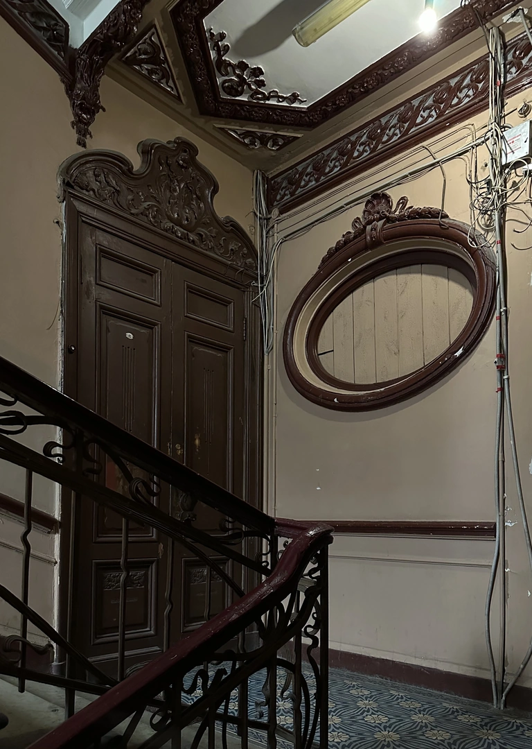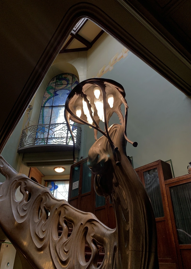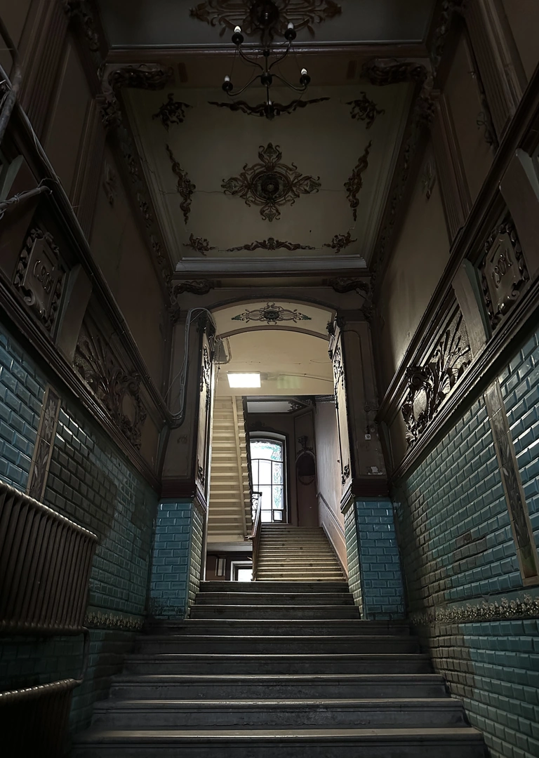 Шикарной лепнины, как в парадных Петербурга и Москвы, тут почти нет. Зато есть потрясающей красоты росписи и конфигурации лестниц (например, горячо любимые мной винтовые), ведь главный вход — это не только дверь, но и множество элементов:
