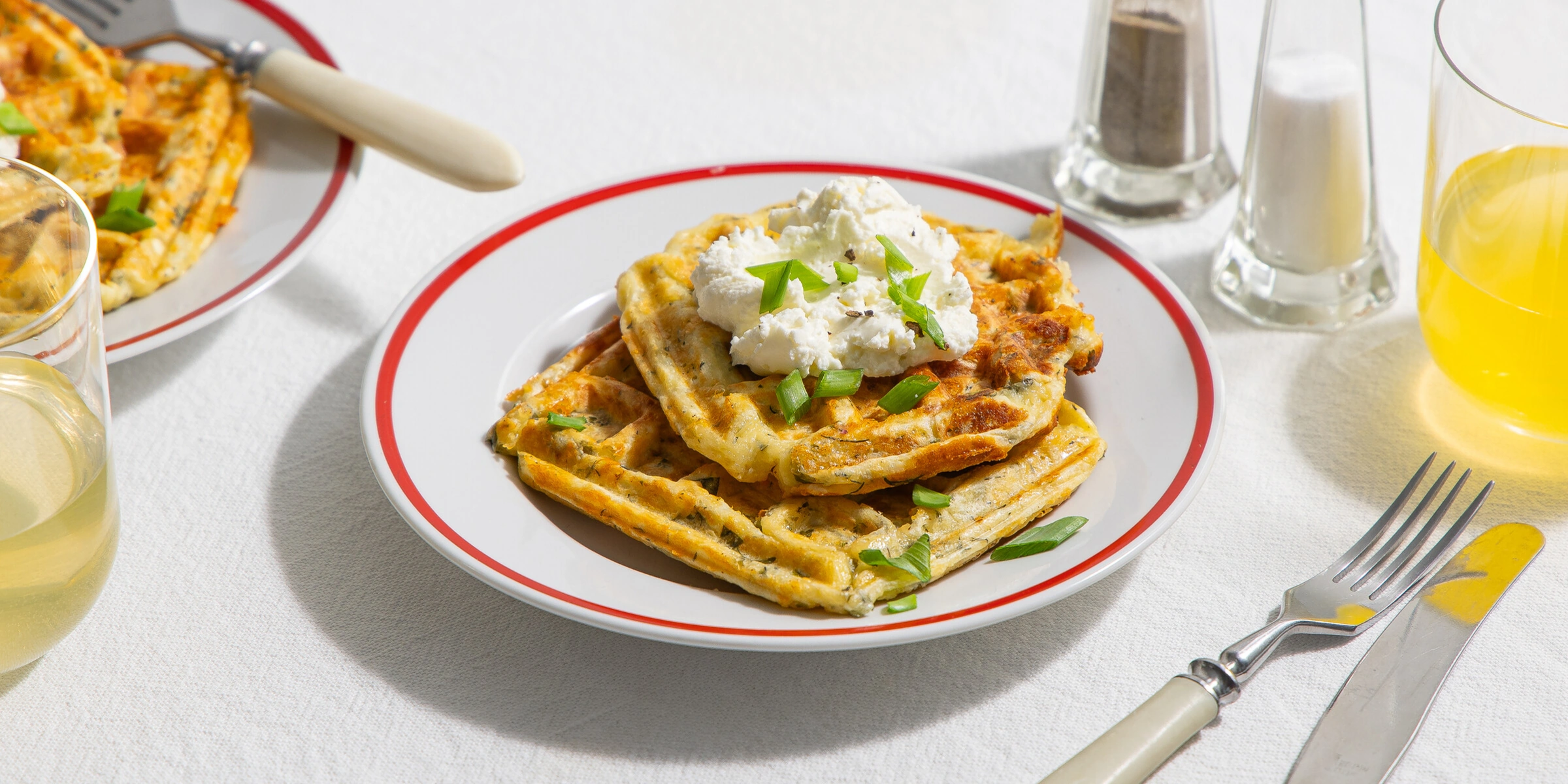 Белковый завтрак, который готовится за считаные минуты. Испеките вафли заранее, уберите в морозилку, а утром достаньте, разогрейте и съешьте. С яйцом пашот, ветчиной, рыбой или просто так.