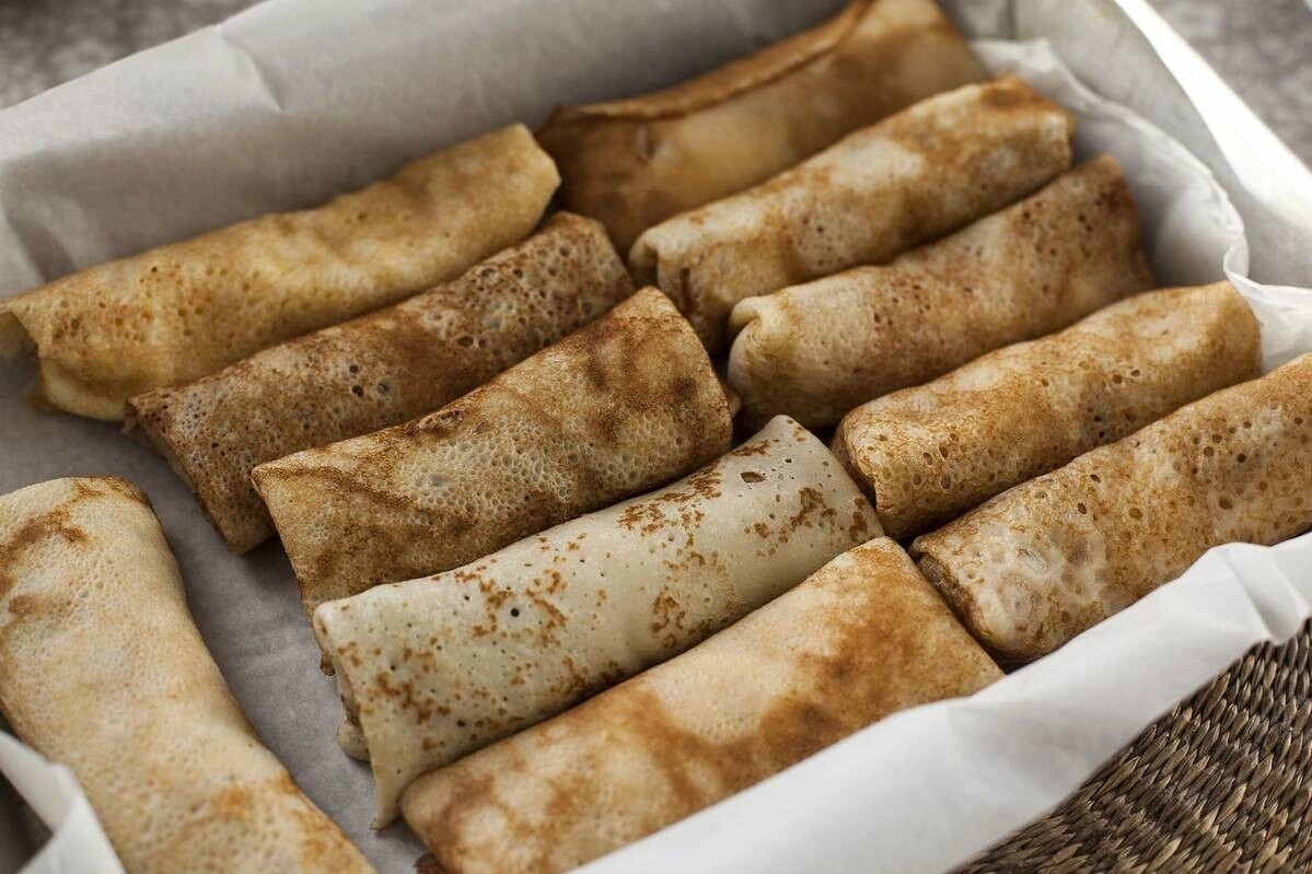 Эти блинчики такие нежные и сливочные, что испечь только одну партию — просто преступление. Так что готовим сразу двойную: одну к столу, вторую для морозилки.