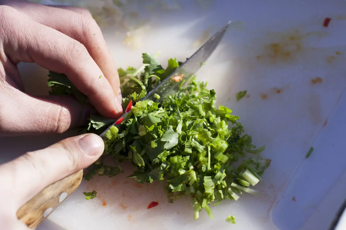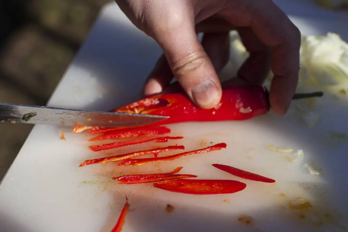 С острым перцем есть небольшая хитрость - сначала нарежьте его вдоль тонкими полосками, а затем уже порубите полоски поперек — тогда острота будет умеренной, используйте не весь перчик, треть или половину.