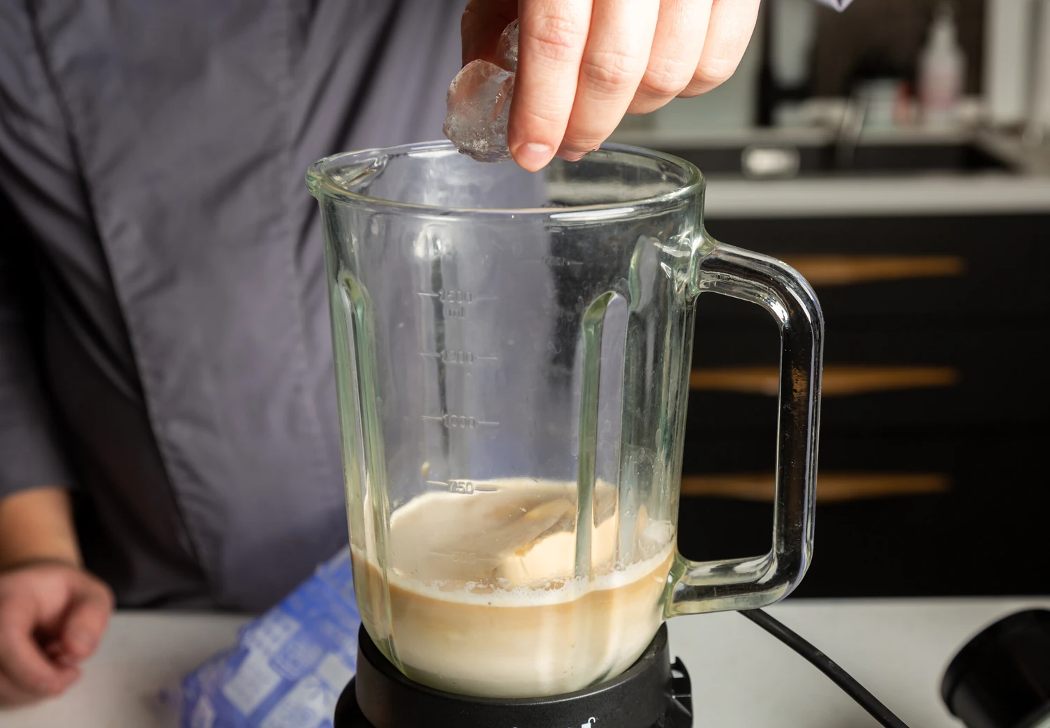 Поместите все ингредиенты в чашу стационарного блендера. Если не уверены в мощности своего девайса, используйте вместо кубиков ледяную крошку.