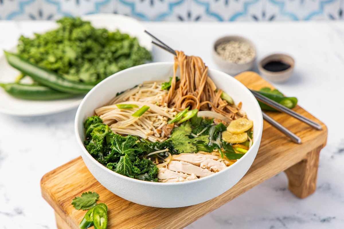 Рецепт «Азиатский суп с грибами эноки и гречневой лапшой»