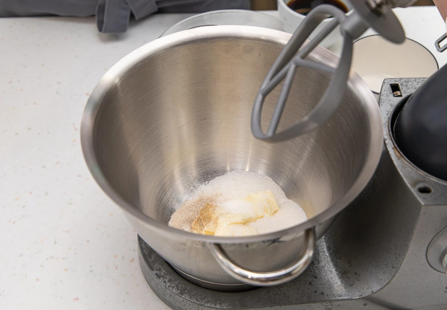 Сливочное масло комнатной температуры взбейте добела с обычным и ванильным сахаром.