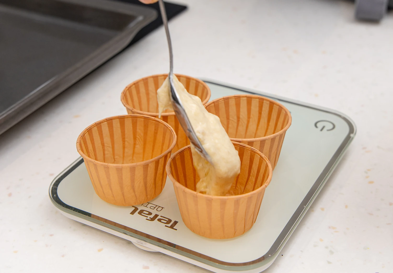 Выложите тесто (по 60 г) в формочки и поставьте в духовку, разогретую до 190 °C, на 19–20 минут.