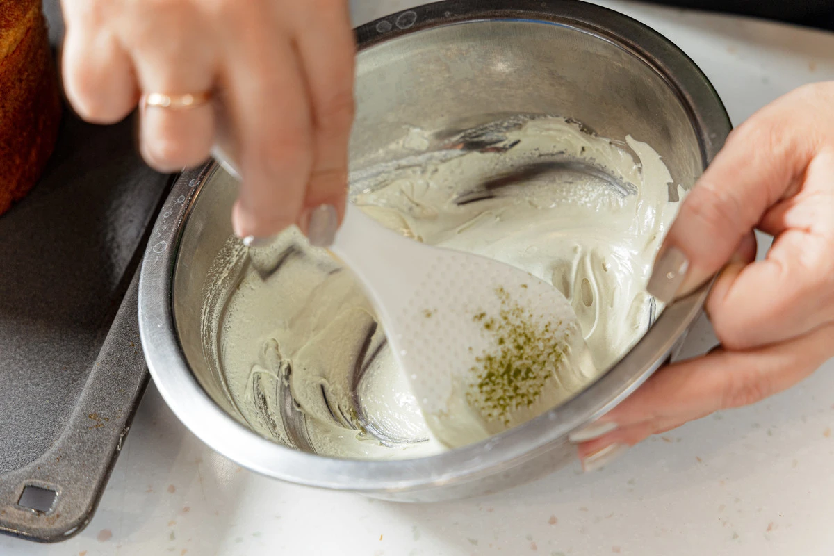 Готовую глазурь можно подкрасить натуральными красителями — куркумой, чаем матча и паприкой — или оставить белой.