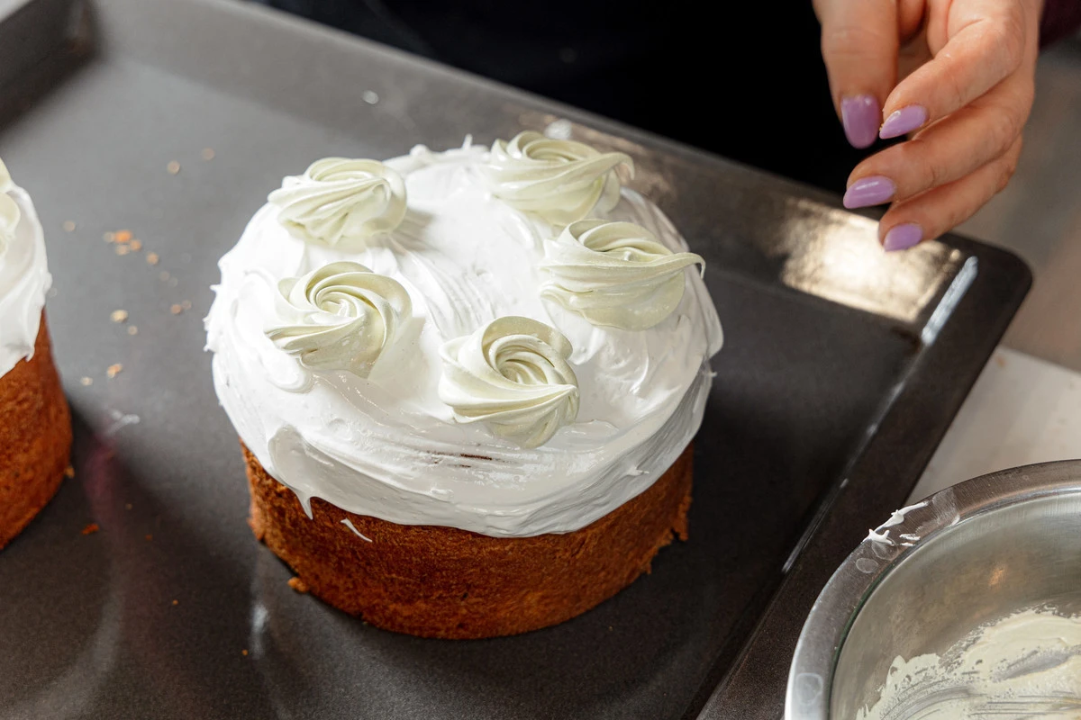 Украсьте куличи, выдавливая смесь через фигурные насадки или выкладывая ложкой, если предпочитаете «домашний» стиль.