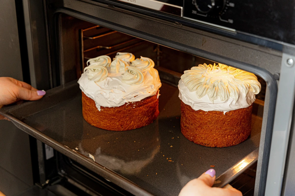 Подсушите куличи с глазурью в духовке 7-10 минут при температуре 100-120 градусов.