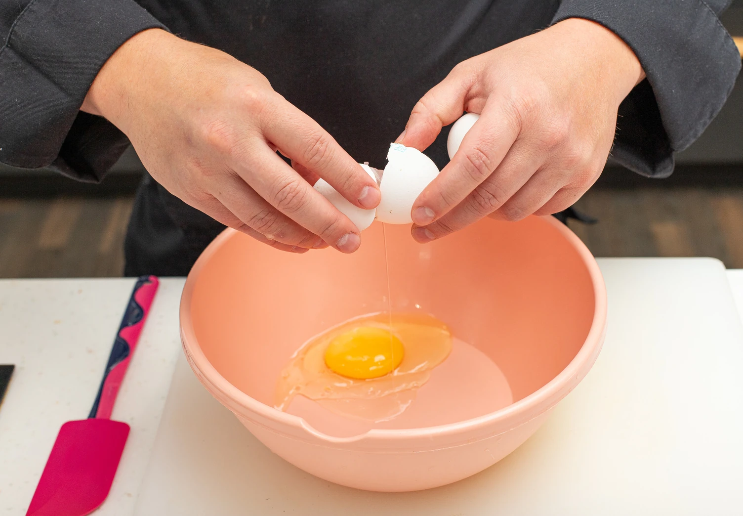 Поместите творог в большую миску, добавьте яйца, всыпьте сахар и посолите. Перемешайте массу до однородности погружным блендером или тщательно разотрите вилкой.