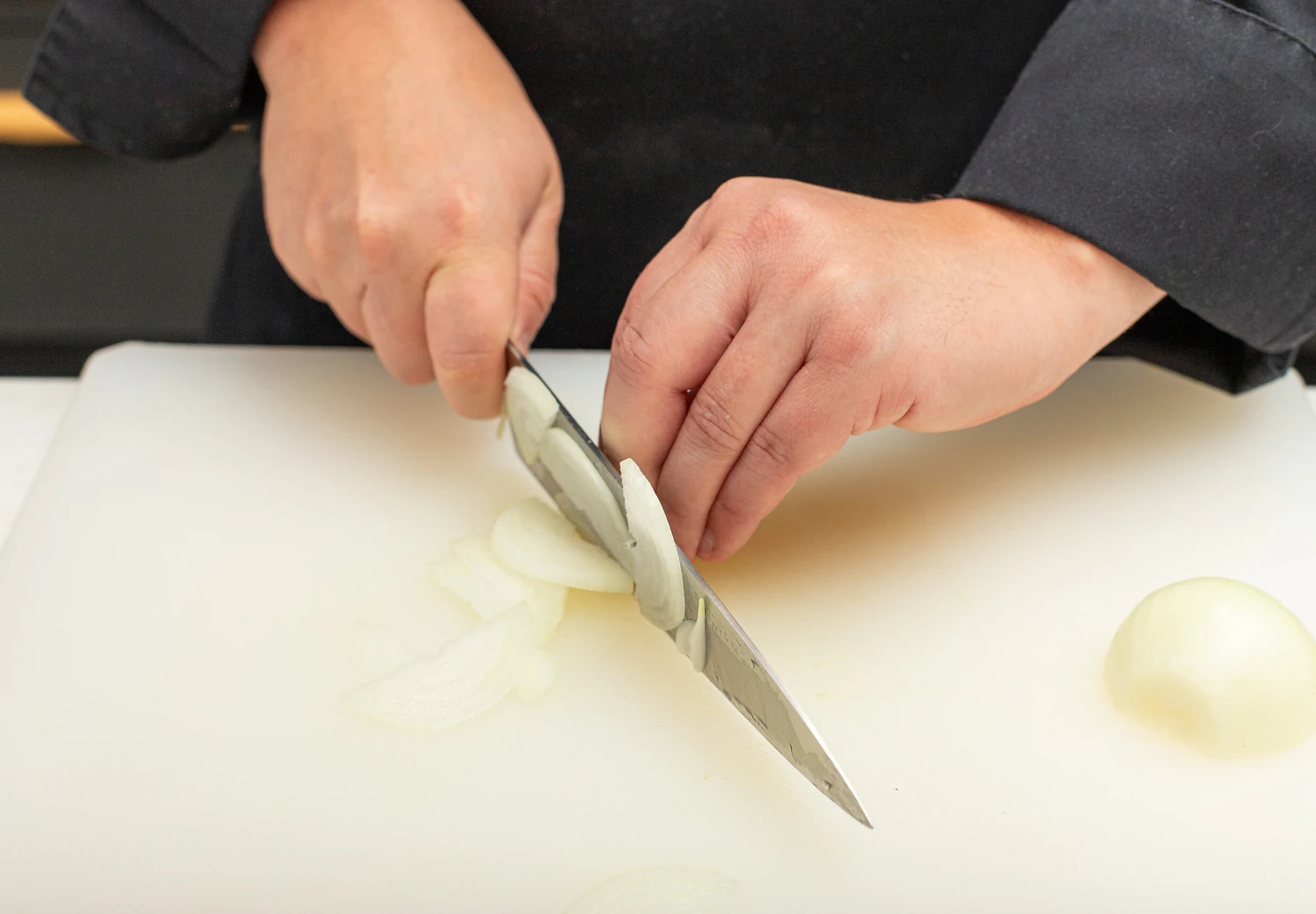 Нарежьте лук полукольцами или кольцами, слегка обжарьте.