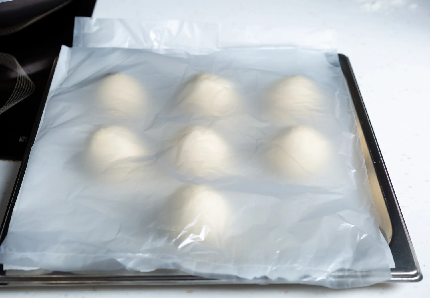 Выложите их на разделочную доску или поднос, присыпанный мукой, накройте полотенцем и поставьте в тёплое место для расстойки ещё на 10 минут.