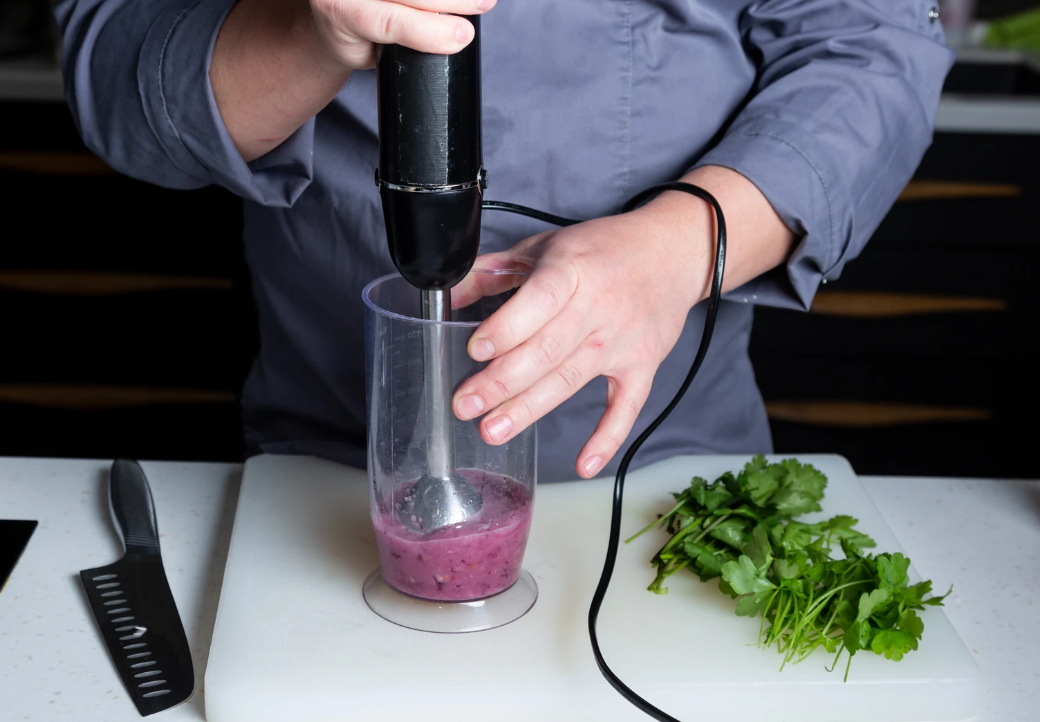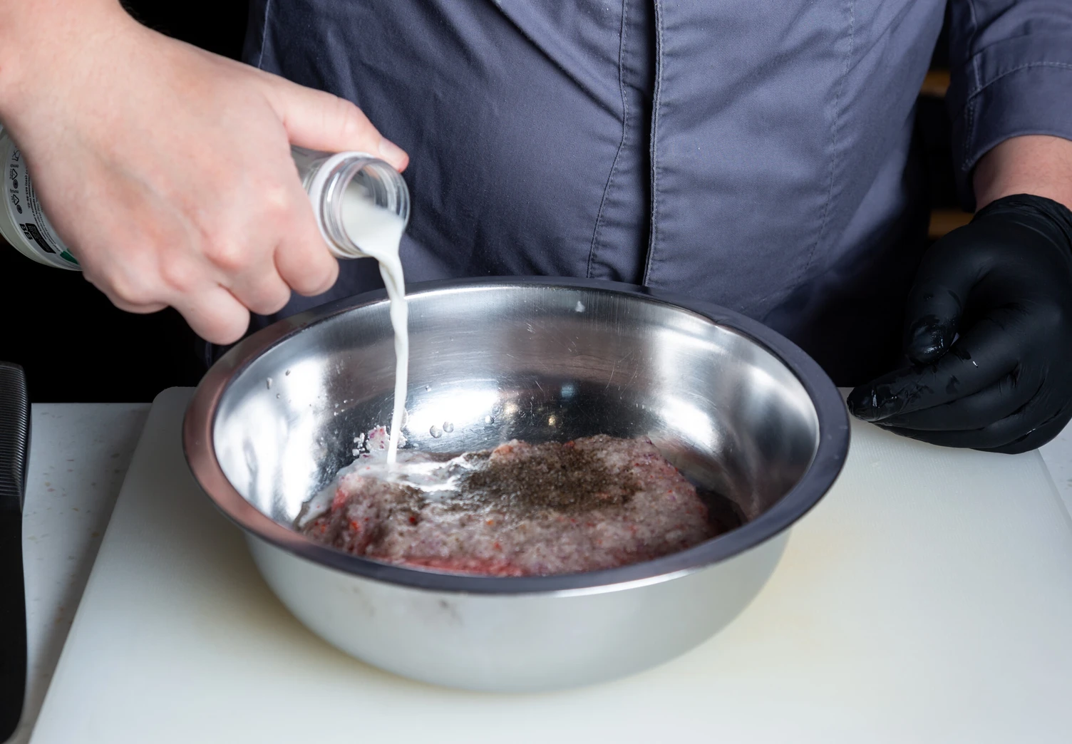 Для начинки лук с перцем чили пробейте блендером до однородной массы и смешайте с фаршем.