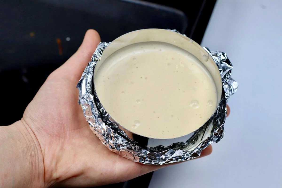 Оберните кондитерское кольцо диаметром 9-10 см фольгой. Выложите тесто и выпекайте 15 минут при 180 °С.