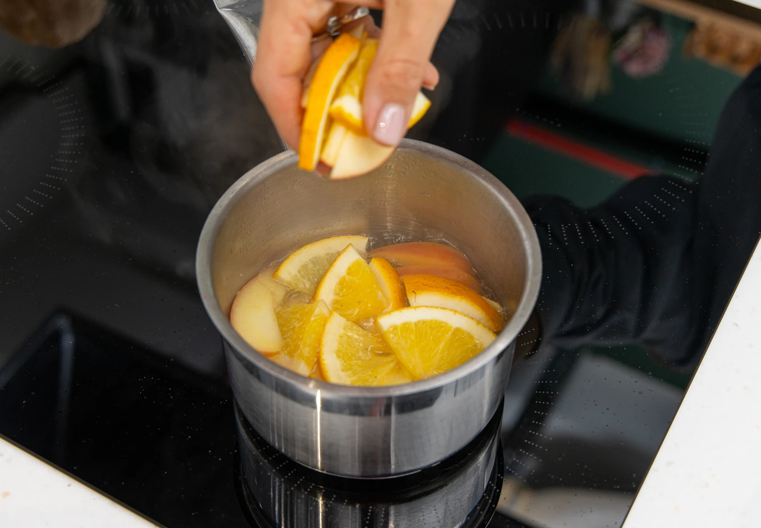 Перемешайте и влейте гранатовый сок. Подогрейте, не доводя до кипения. Выключите огонь и оставьте напиток под крышкой минимум на полчаса.