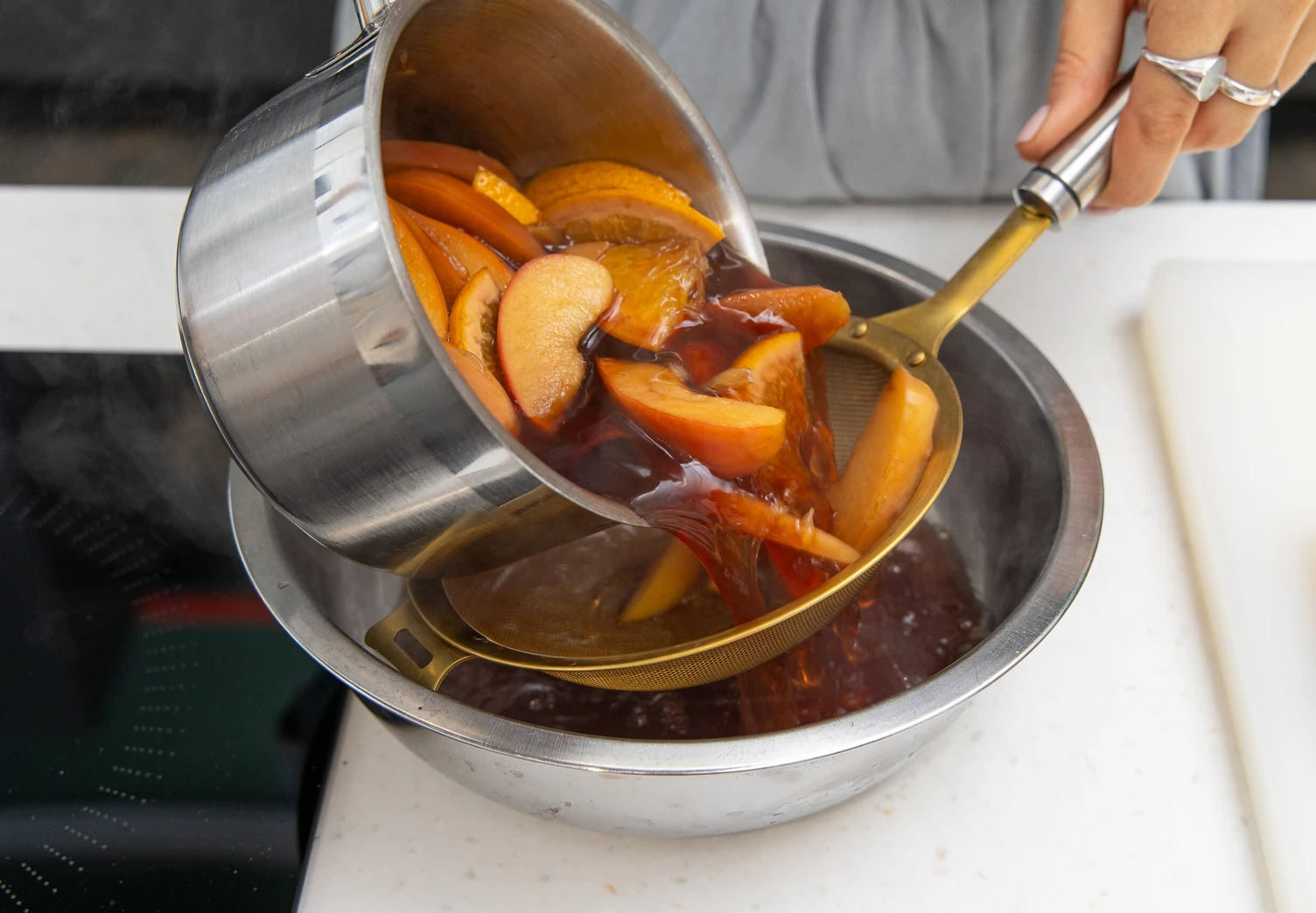 Готовый глинтвейн процедите через сито.