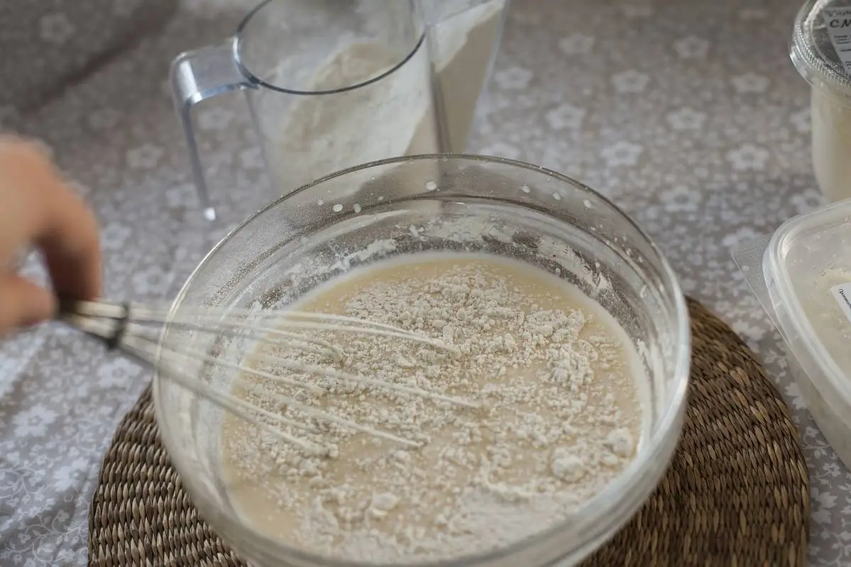 Порциями всыпайте просеянную муку, каждый раз хорошо размешивая. Оставьте тесто на полчаса при комнатной температуре.