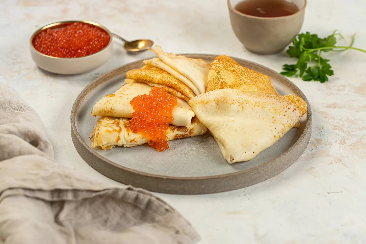 Перед первым блином смажьте сковороду маслом, а дальше жарьте на почти сухой хорошо разогретой сковороде. Готовые блинчики подавайте с любыми начинками на ваш вкус.