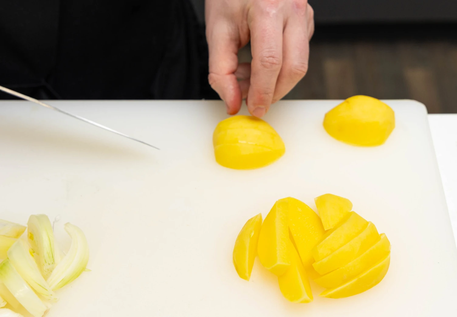 Лук и картофель очистите, нарежьте небольшими дольками.