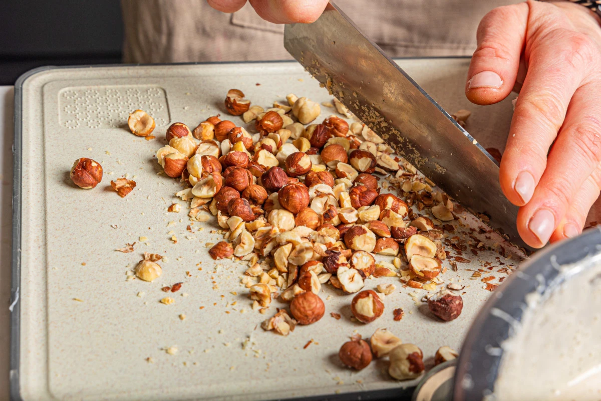 Орехи порубите крупно. Духовку разогрейте до 180 ℃.