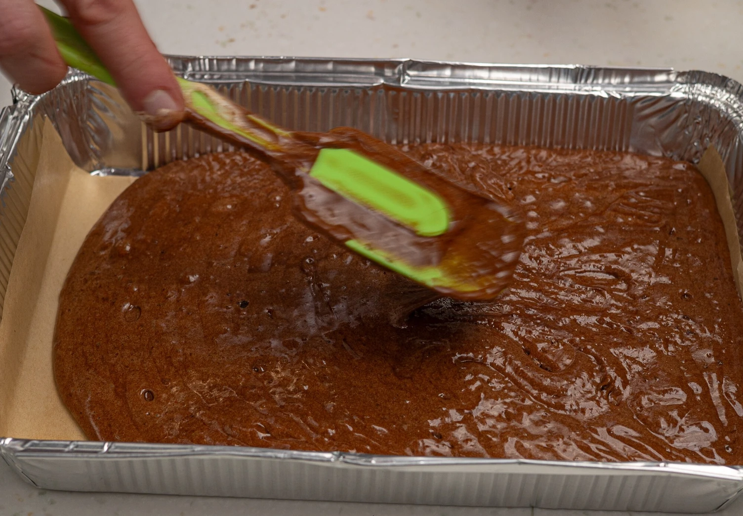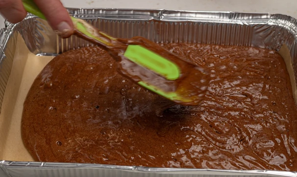 Вылейте тесто в подготовленную форму и разровняйте. Выпекайте 17-18 минут в духовке, разогретой до 160°C. Дайте брауни полностью остыть в форме перед нарезкой.