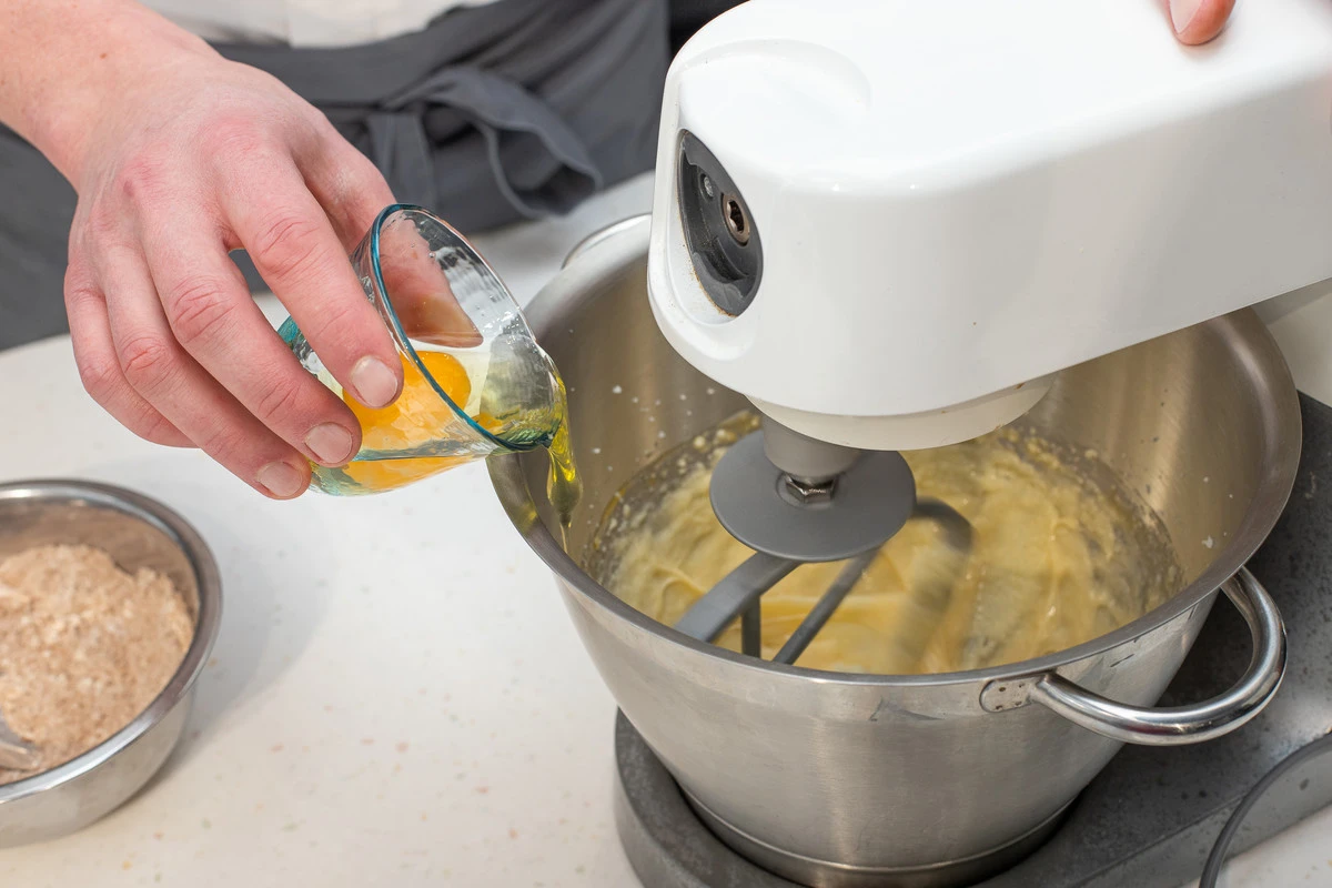 Сливочное масло комнатной температуры взбейте с сахаром до пышности. Добавьте яйца и снова взбейте.