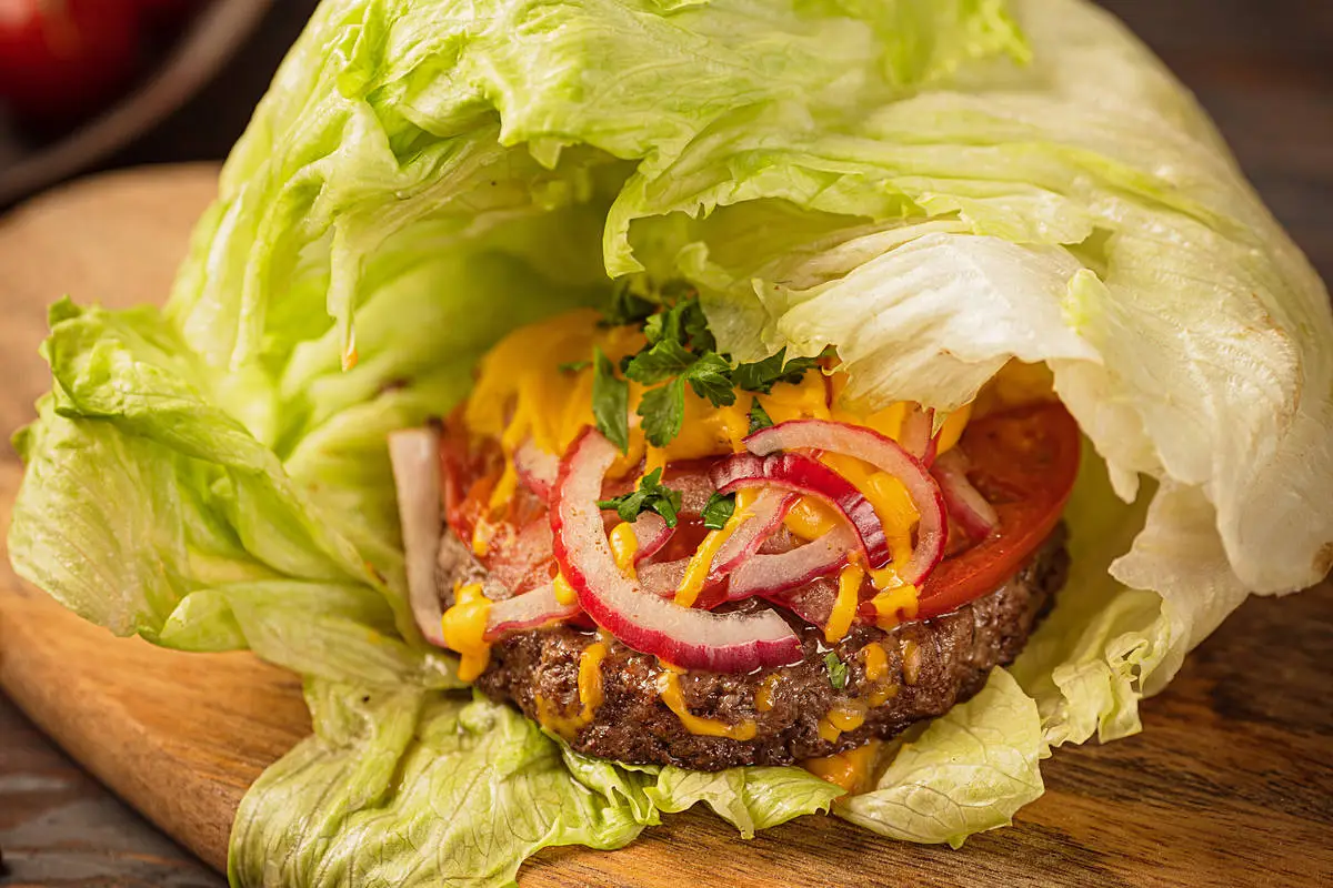 Такой бургер без хлеба, зато с хрустящим айсбергом и сырным соусом очень здорово готовить на свежем воздухе в хорошей компании.