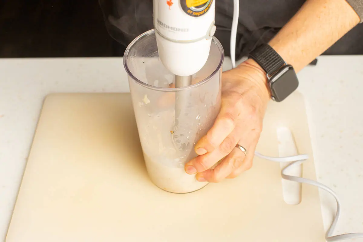 Пробейте всё в блендере до однородности, если соус получился слишком густой, добавьте немного тёплой воды.