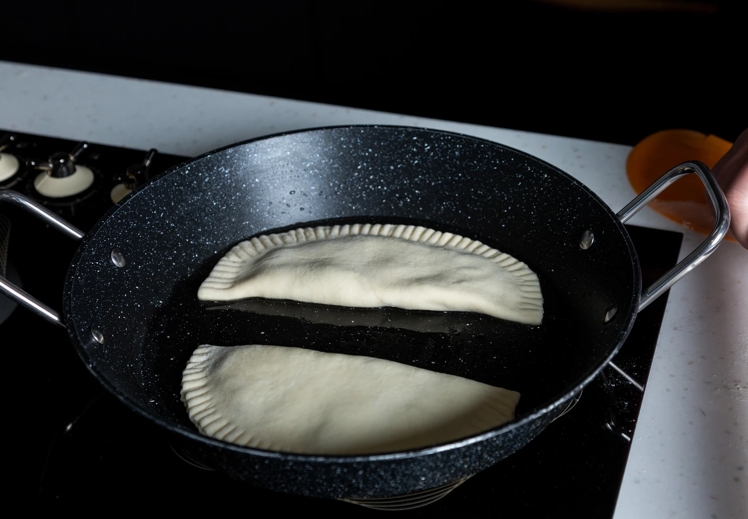 Жарьте чебуреки на растительном масле с двух сторон по 5–6 минут.