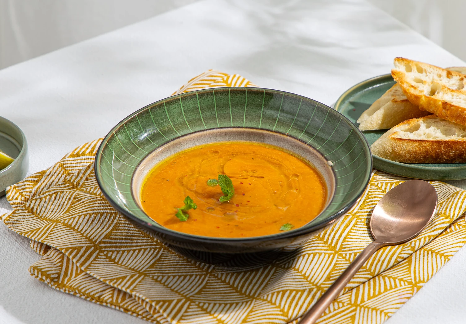 Согревающий пряный суп — то что нужно для осенне-зимнего сезона! Если хотите сделать блюдо более сытным, дополните его при подаче ломтиками куриной грудки, семечками или фетой.