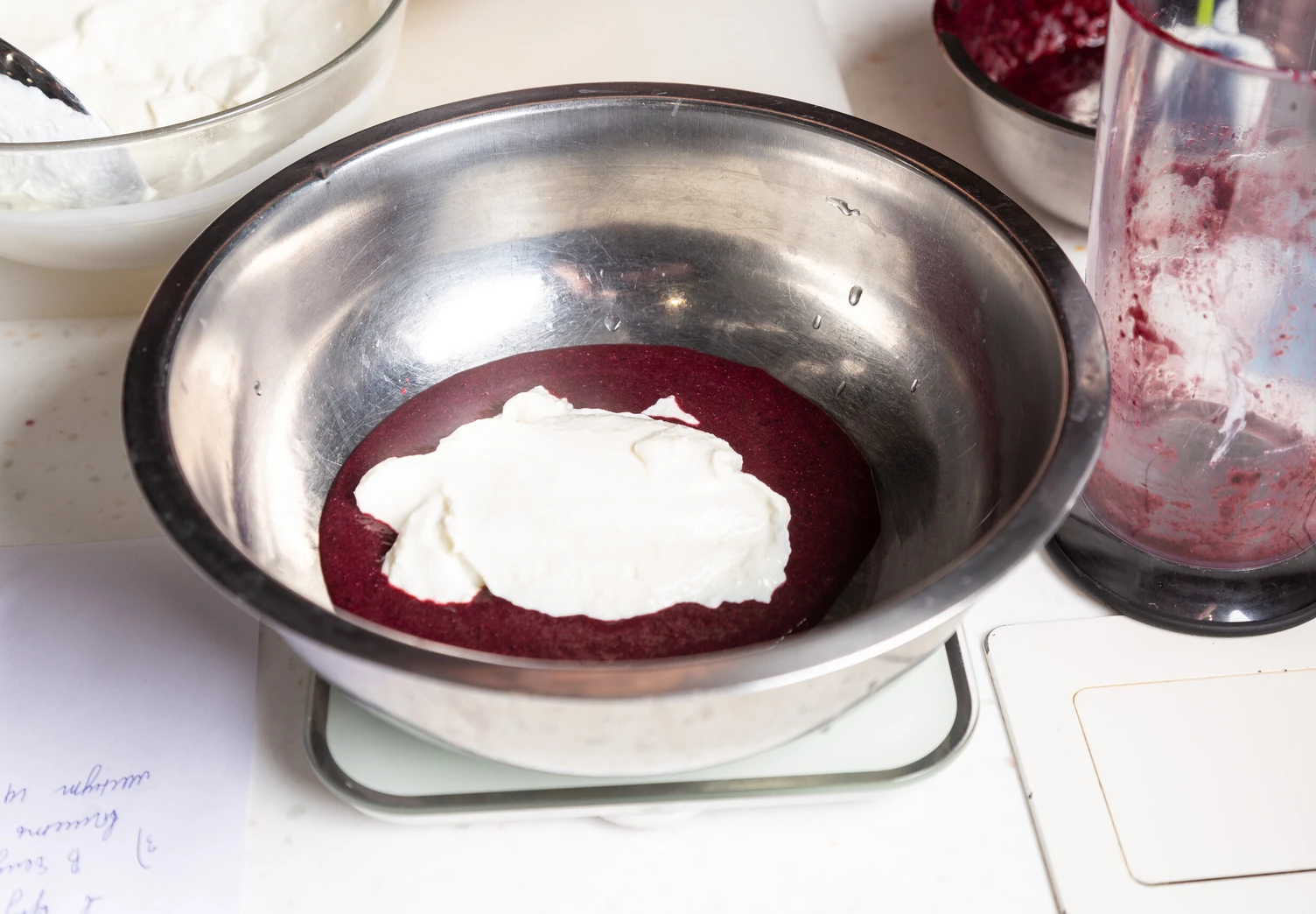 Далее вылейте массу с меньшим количеством ягод, снова уберите в морозилку на 15 минут и повторите с оставшейся частью творожно-ягодной массы.