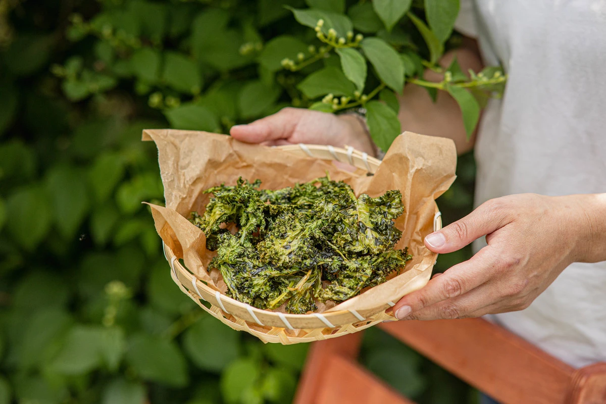 Чипсы из кейла — здоровая и небанальная альтернатива обычным, готовятся они очень просто. Масло можно использовать оливковое или кунжутное, а также добавить специи на свой вкус.