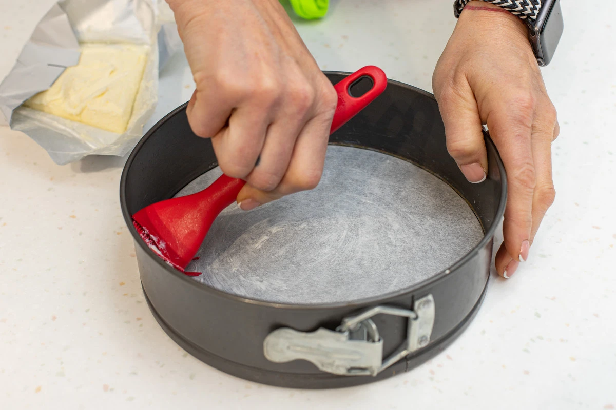 Форму для выпечки диаметром 22-24 см смажьте маслом и обсыпьте мукой.
