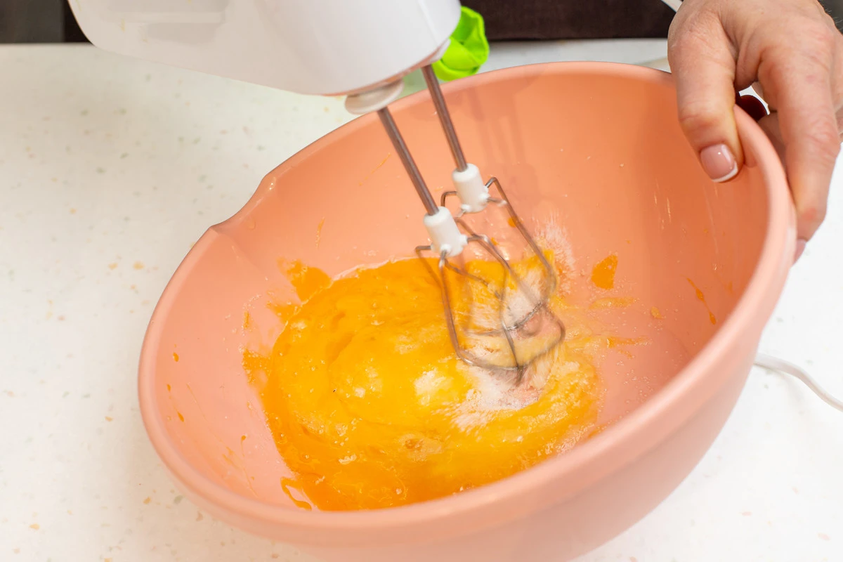 Яйца разбейте в миску, взбейте с сахаром в пену.