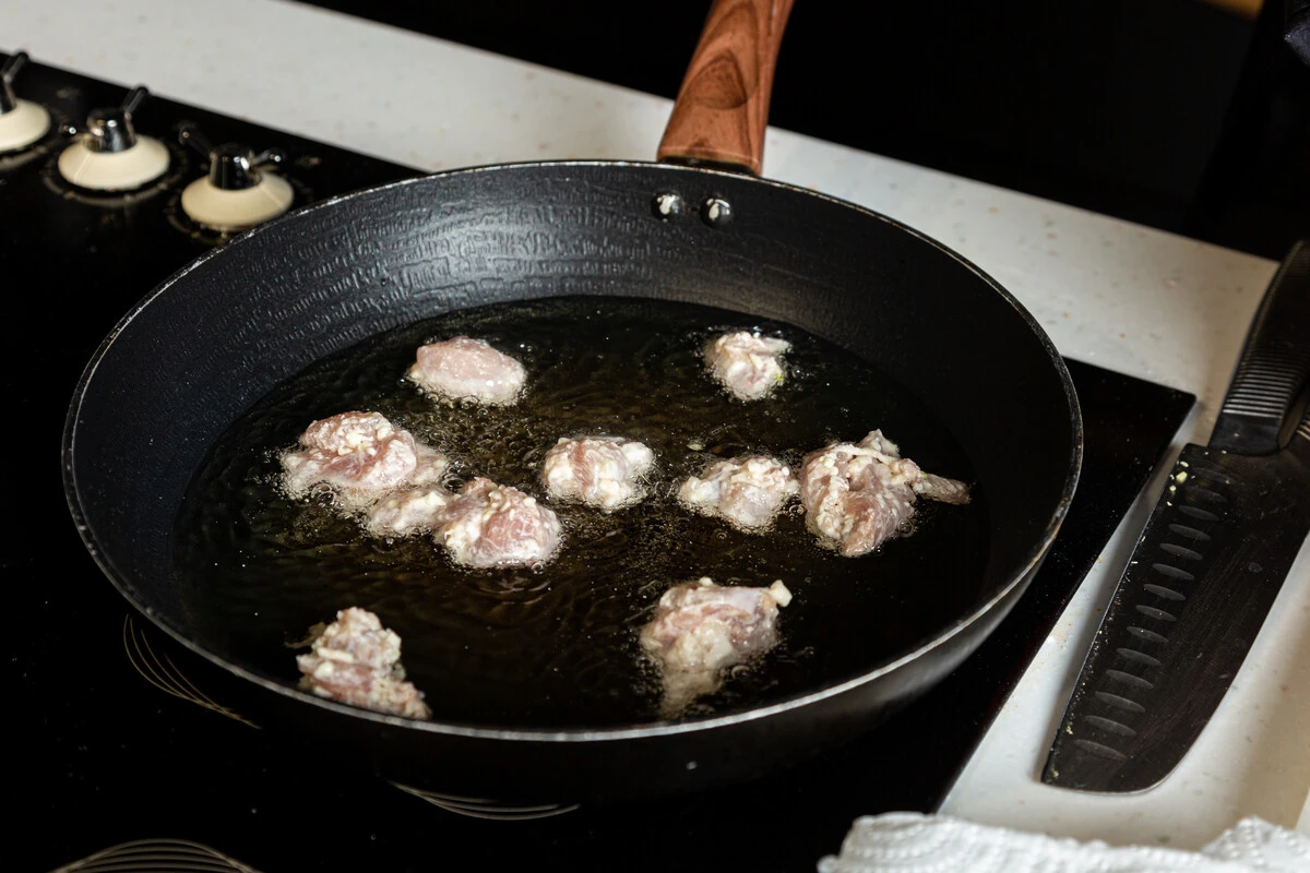 Жарьте курицу в большом количестве растительного масла до готовности.