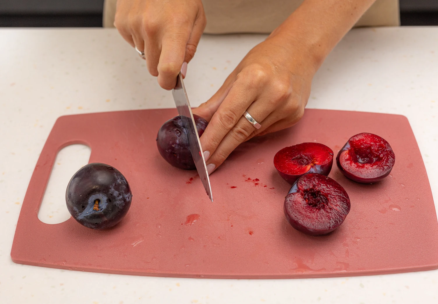 Очень простой и лёгкий десерт, приготовление которого по силам и ребёнку. Для этого рецепта можно использовать любые сладкие фрукты с мясистой мякотью: сливы, абрикосы, персики или нектарины.