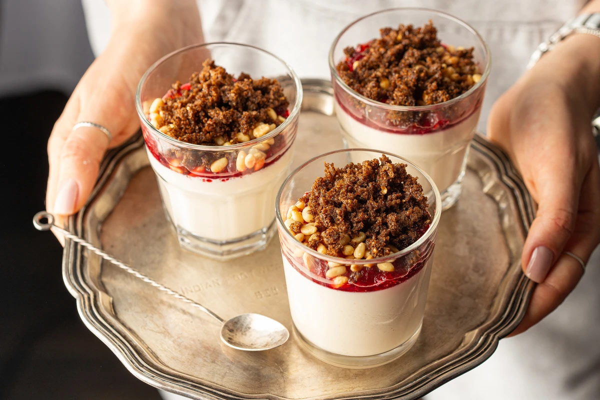 Устали от тортов, пирожных, конфет? Попробуйте этот лёгкий и необычный десерт на основе ряженки с клюквой, кедровыми орешками и «землёй» из бородинского хлеба. Эти ингредиенты дают необычное сочетание, получается вкусно.