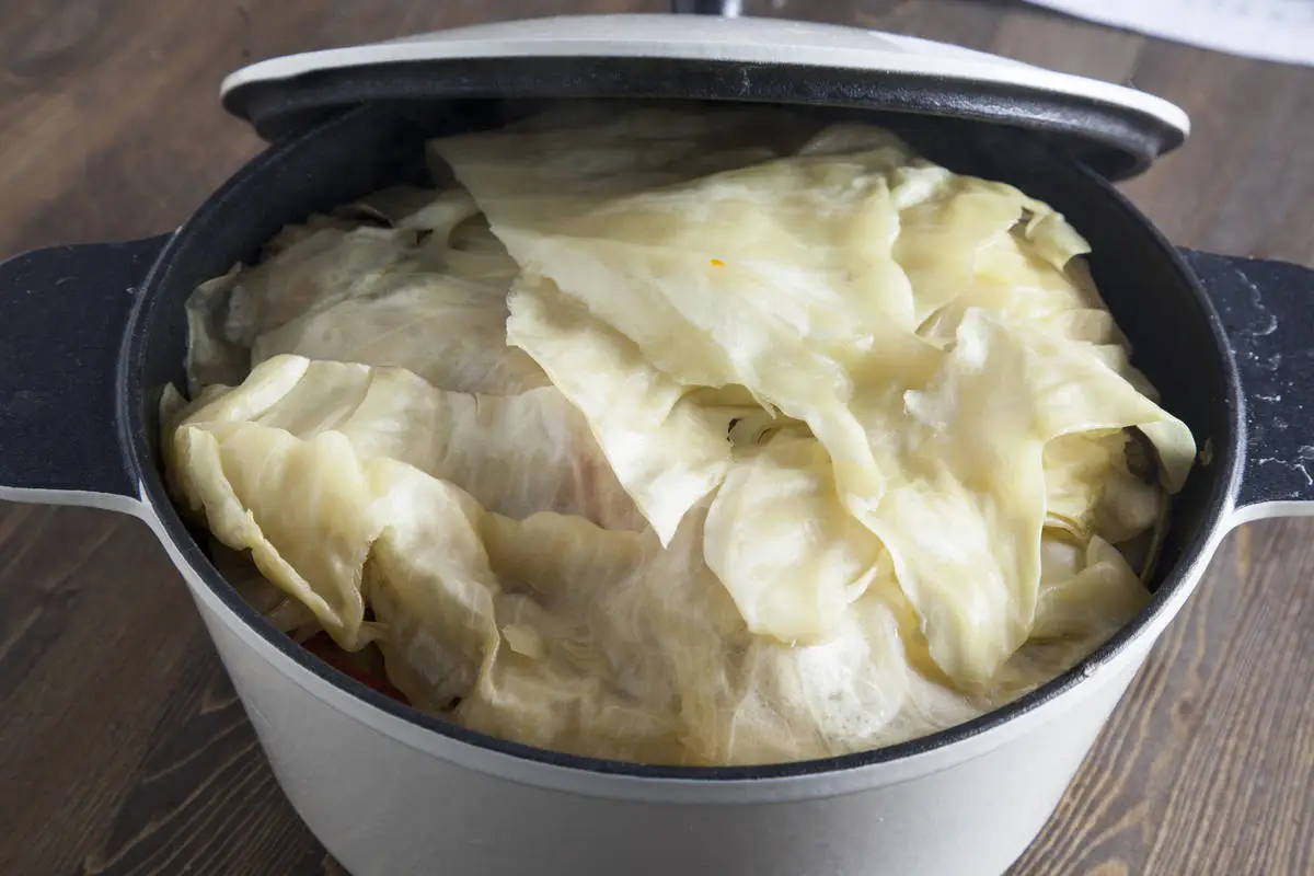 Листы капусты сохраняют пар внутри блюда, поэтому овощи и мясо пропитываются соками и ароматами друг-друга, от долгого приготовления они становятся мягчайшими, но сохраняют форму и вкус. О том, что блюдо готово вы поймете по потрясающему аромату из кухни.