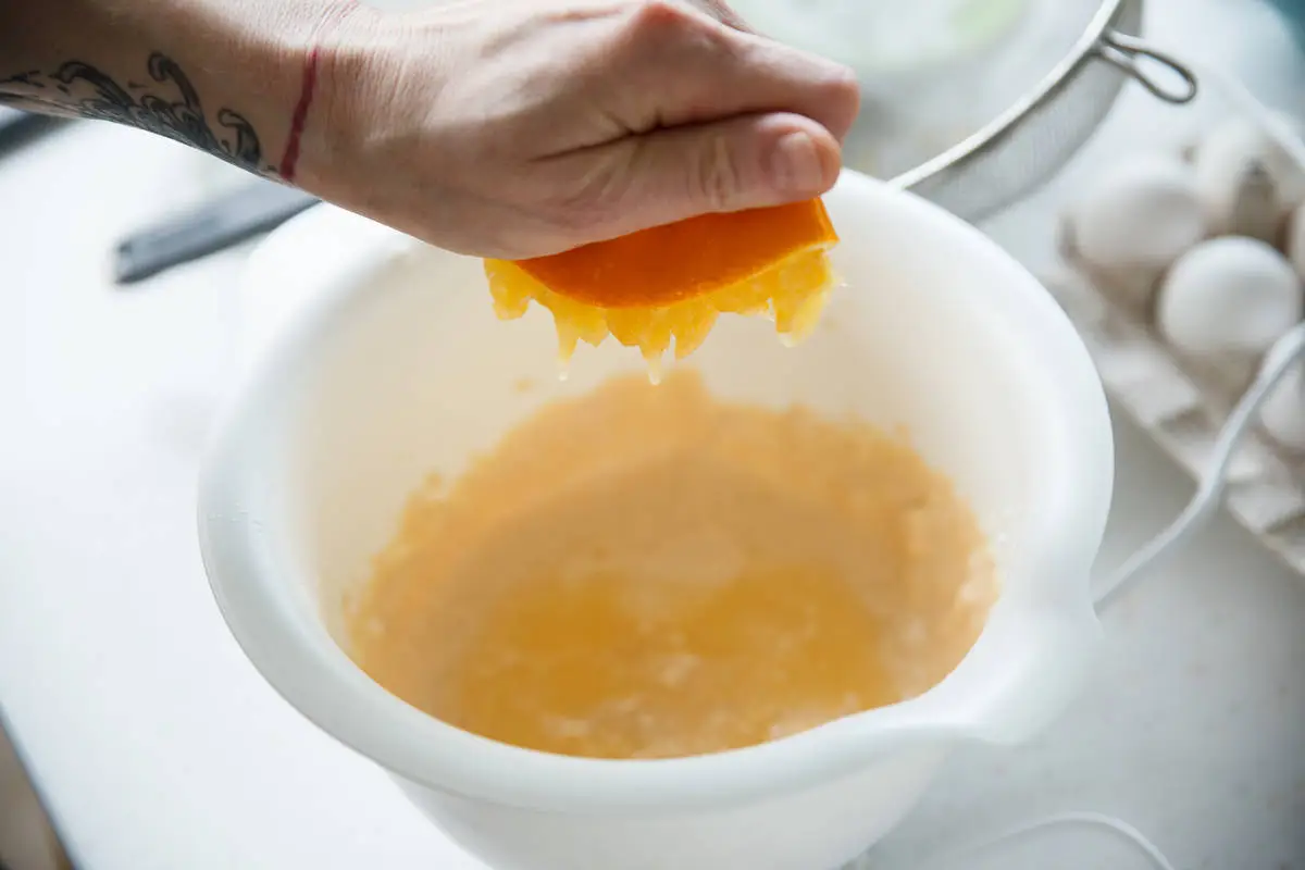 Добавьте маскарпоне и выдавите лимон, взбейте всё вместе в крем.