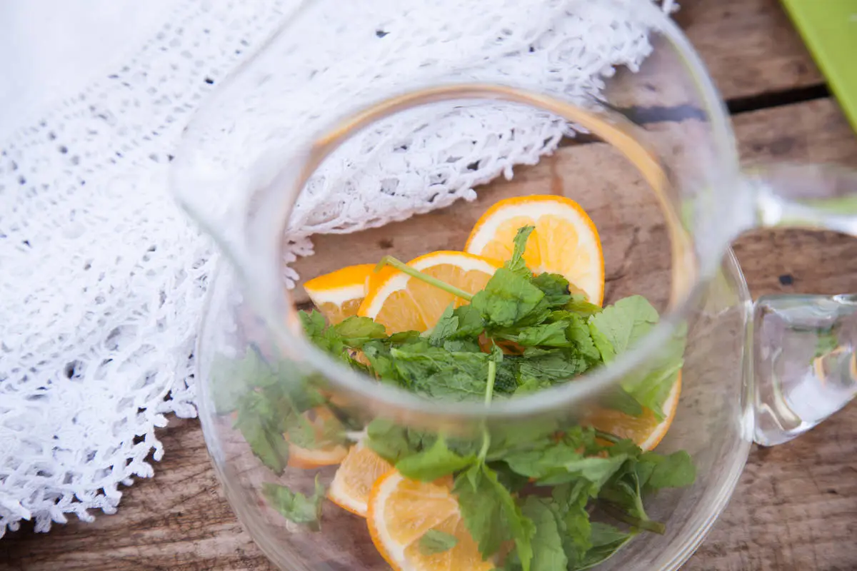 Перед подачей нарежьте дольками половинку лимона, порвите и разомните руками оставшуюся мяту, сложите все в прозрачный кувшин и залейте настоявшимся лимонадом — готово!