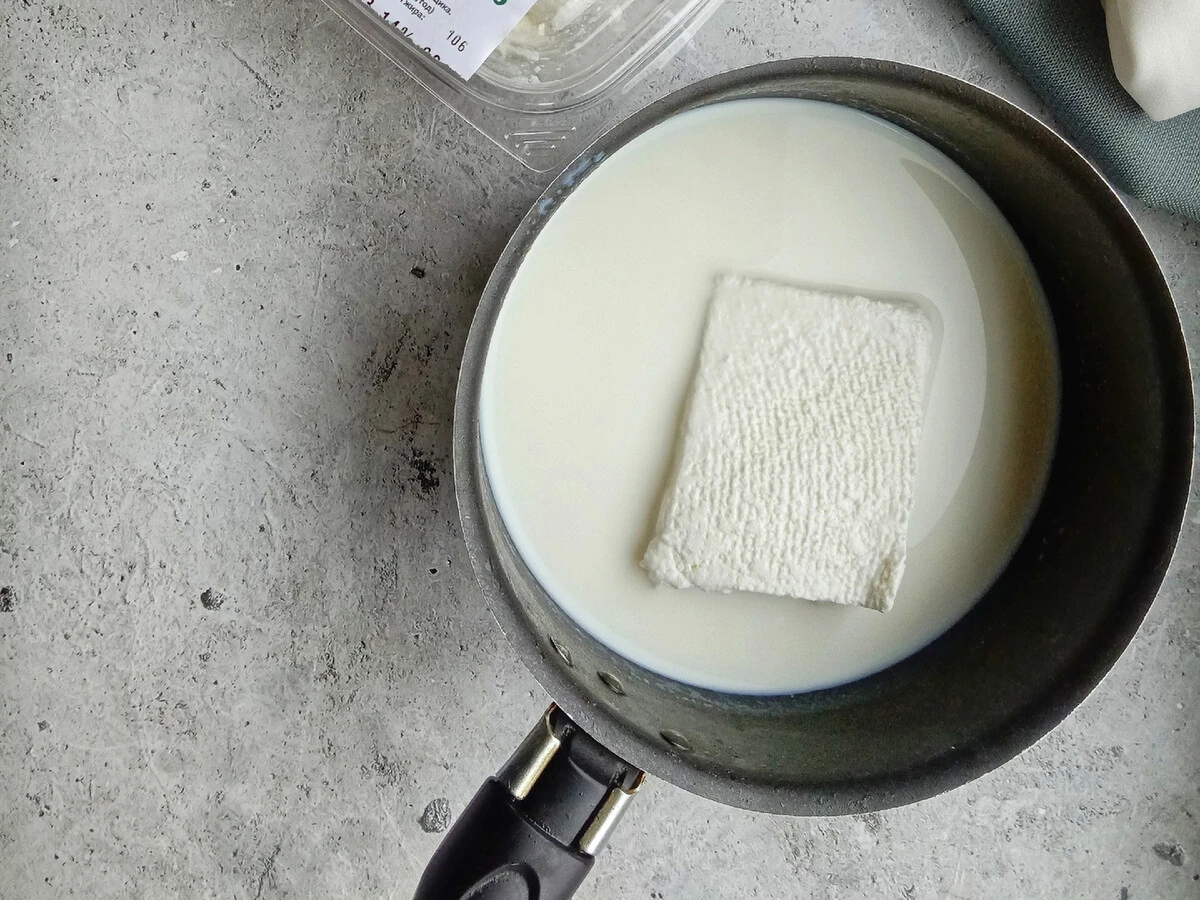 Творог и молоко соедините в сотейнике, поставьте на слабый огонь.
