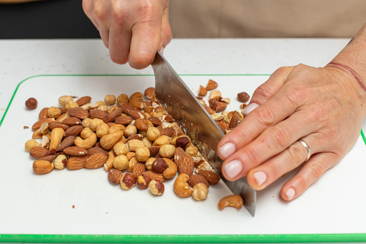 Орехи порубите ножом.