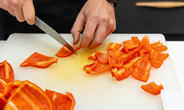 Варите перец примерно 1,5 часа на медленном огне. Помешивайте хотя бы раз в 5 минут, чтобы блюдо не пригорело, до тех пор, пока не выпарится почти вся жидкость.