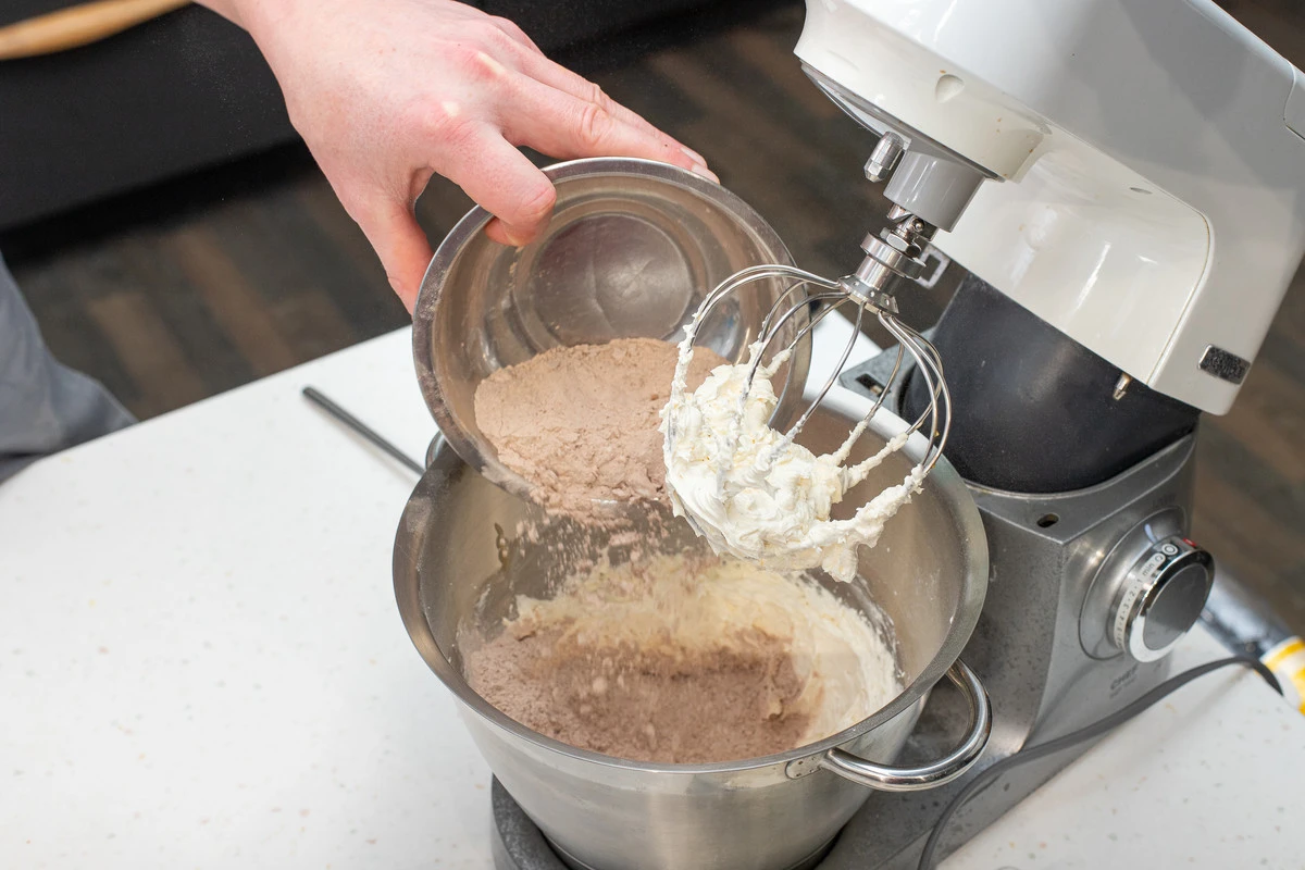 Смешайте муку, какао, крахмал, корицу, соль и корицу. Добавьте сухие ингредиенты к масляно-яичной смеси и перемешайте.