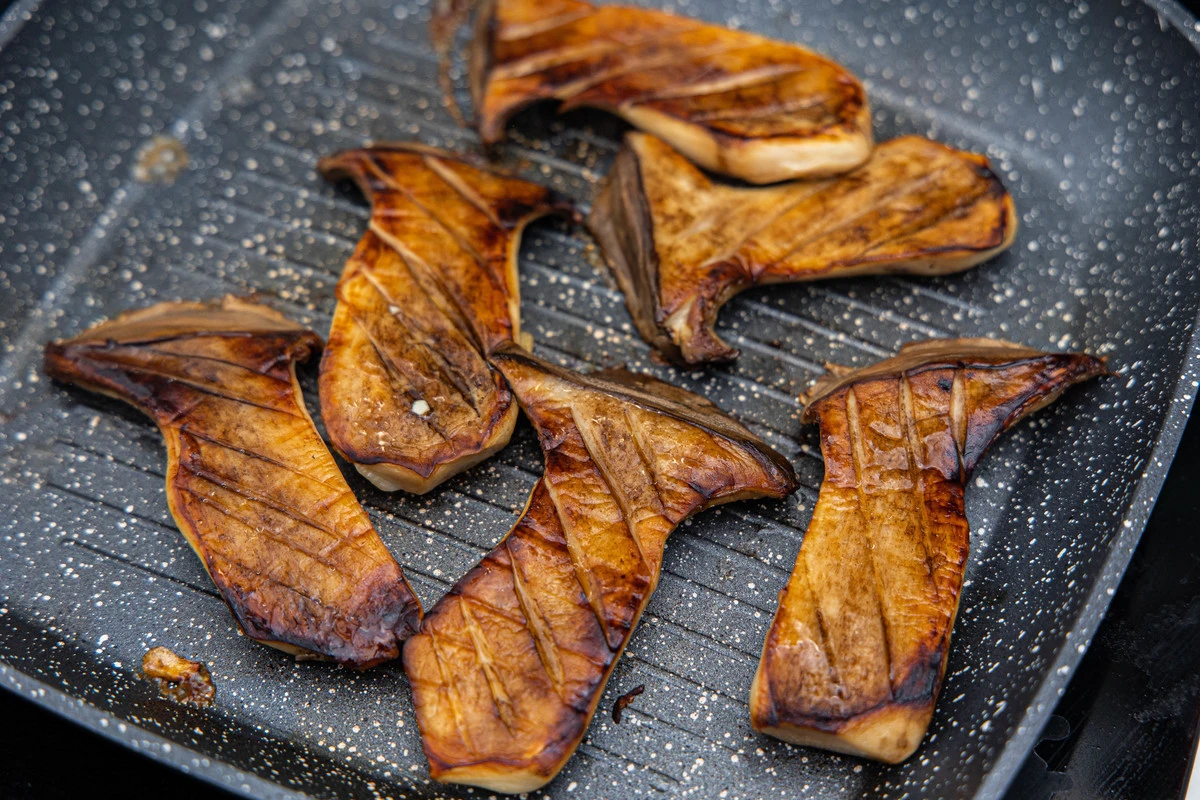 Грибы обжарьте на сковороде до золотистого цвета с двух сторон или запеките под разогретым до 220 °C грилем.
